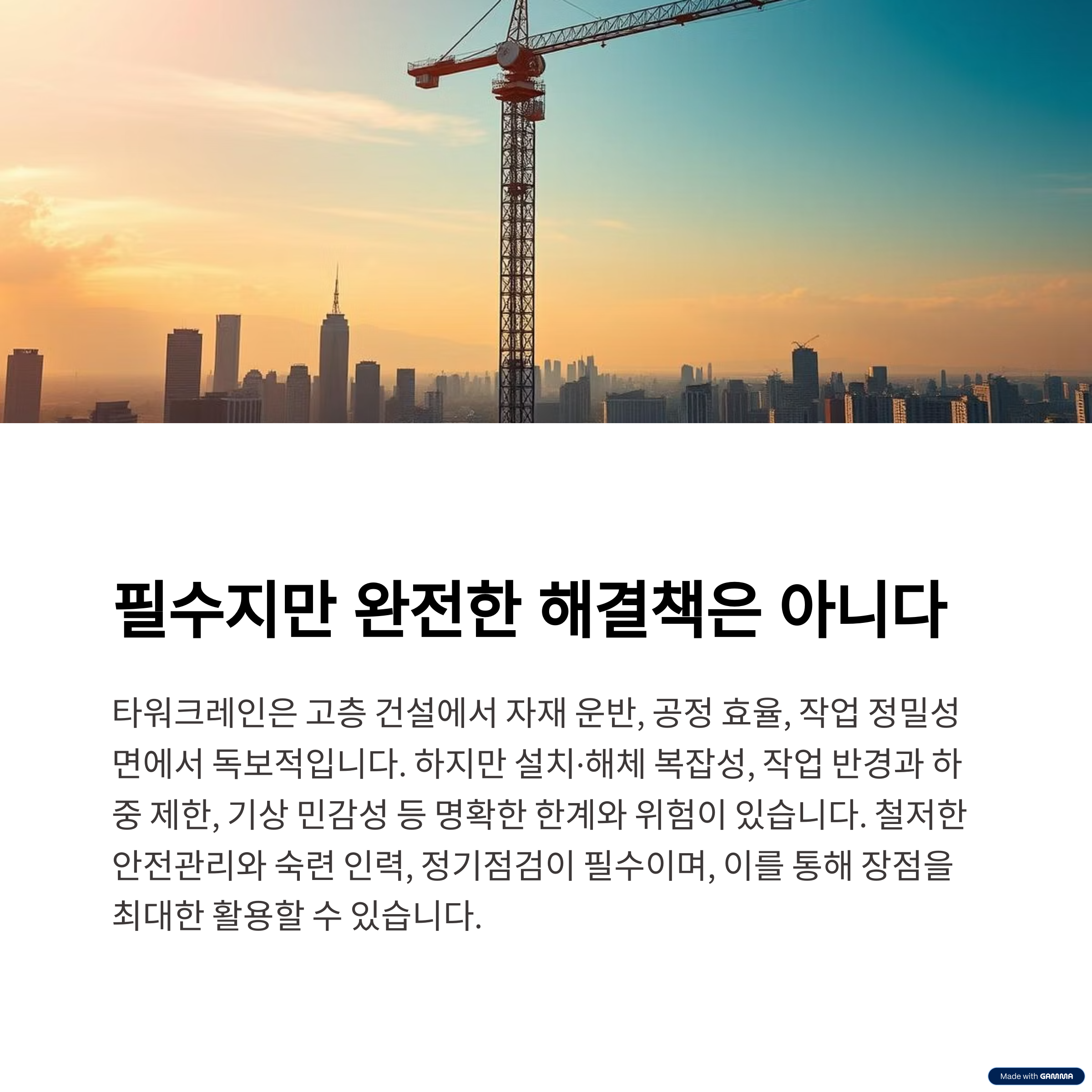 고층 건설의 핵심 장비, 타워크레인의 역할과 한계