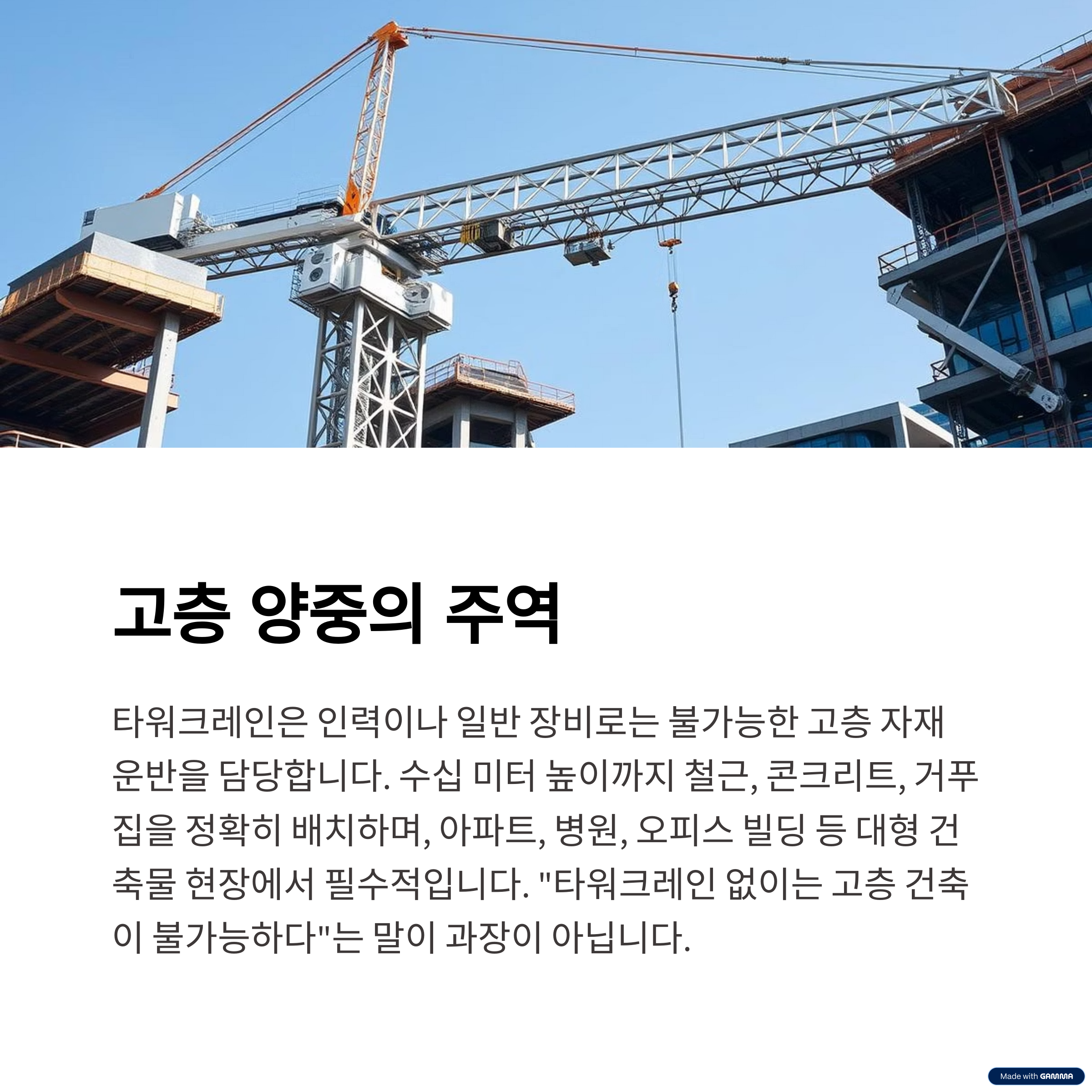 "타워크레인 없이는 고층 건축이 사실상 불가능하다"는 말은 과장이 아닙니다.
