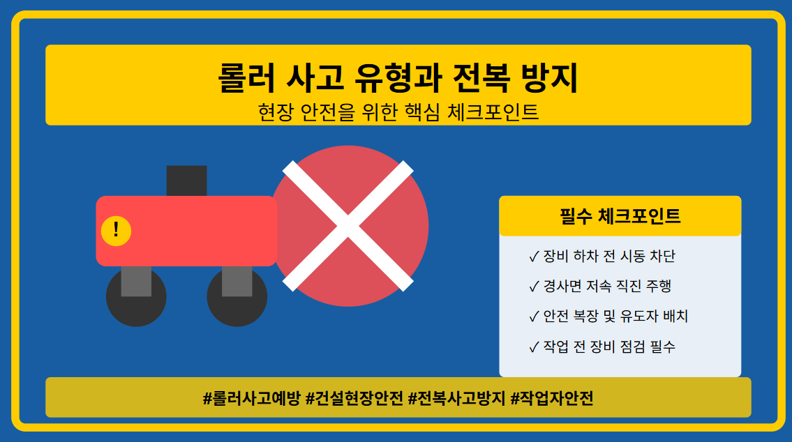 건설 현장에서 자주 발생하는 롤러 사고는 대부분 기본 안전수칙 미준수와 부주의에서 비롯됩니다.