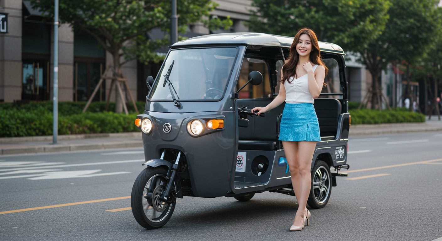 전기삼륜차는 일반 도로에서 느리지만 안전한 이동수단으로 각광받고 있습니다.