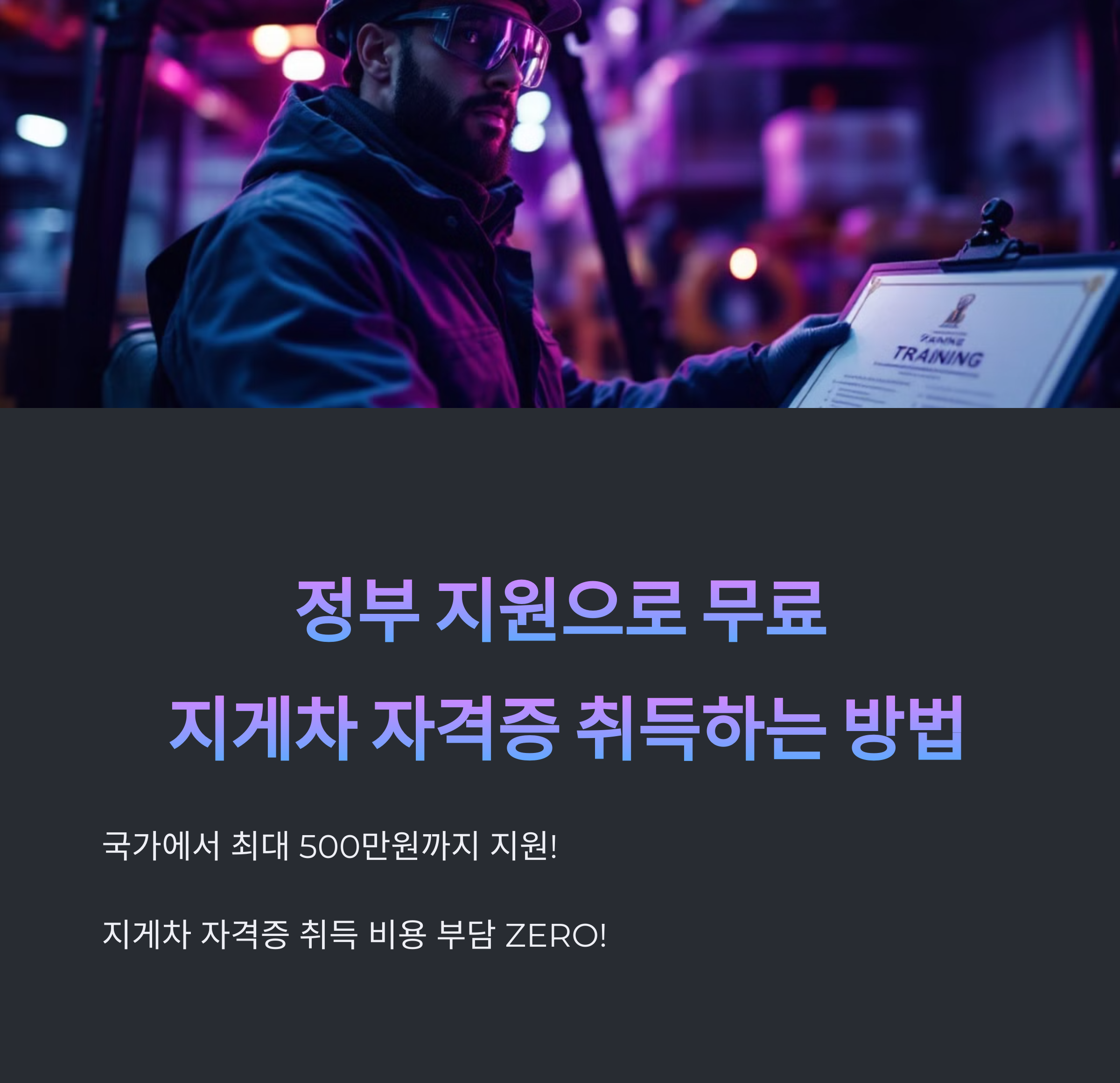 - 지원 내용: 지게차 자격증 취득을 위한 교육비 최대 300~500만 원 지원