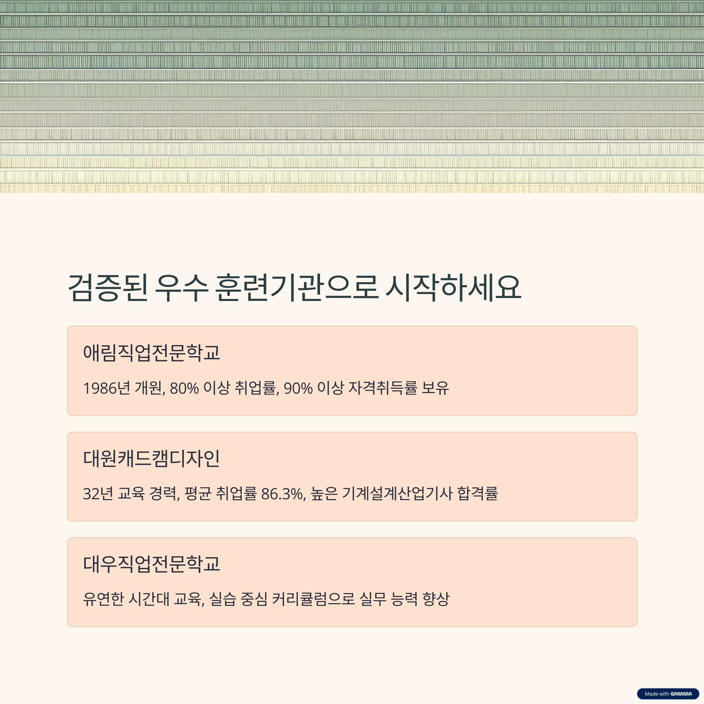 또한, 대원캐드캠디자인직업전문학교는 32년 경력을 가진 교육기관으로, 기계설계 분야에서 전국 상위 취업률을 기록하고 있습니다.