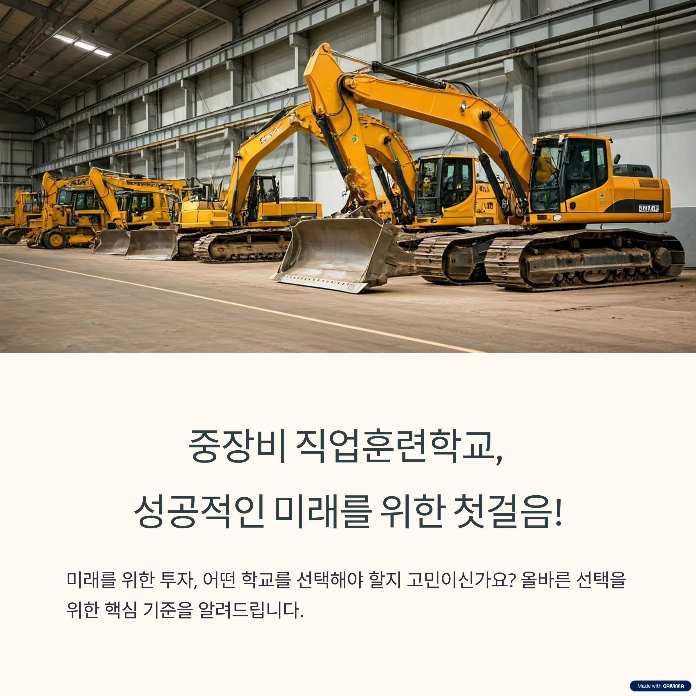 오늘은 중장비 관련 직업훈련학교를 선택할 때 고려해야 할 기준과 요소에 대해 말씀드릴게요.