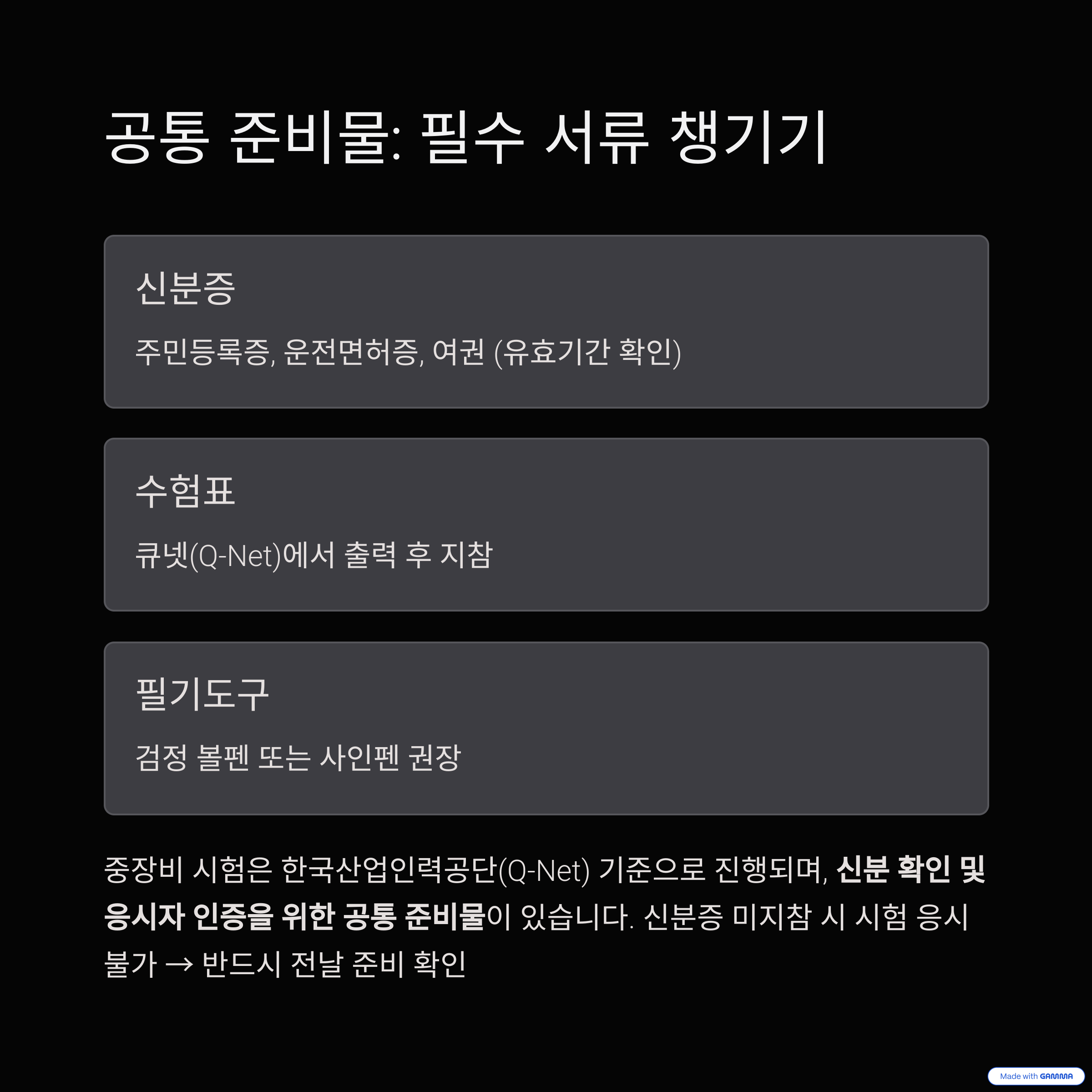 각 단계마다 필요한 준비물이 다르고, 누락 시 시험 응시 자체가 불가능할 수도 있습니다.