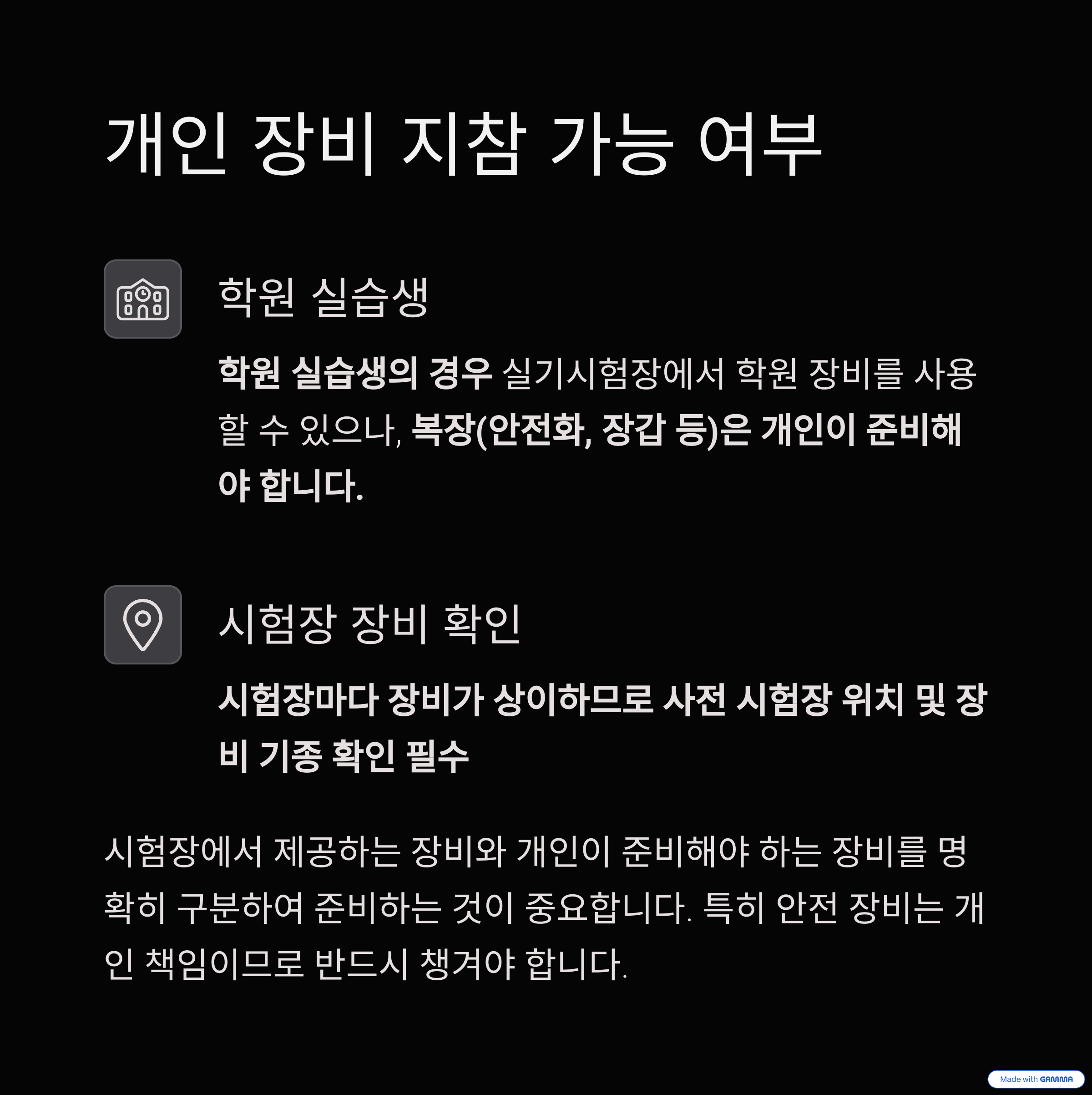 • 시험장마다 장비가 상이하므로 사전 시험장 위치 및 장비 기종 확인 필수