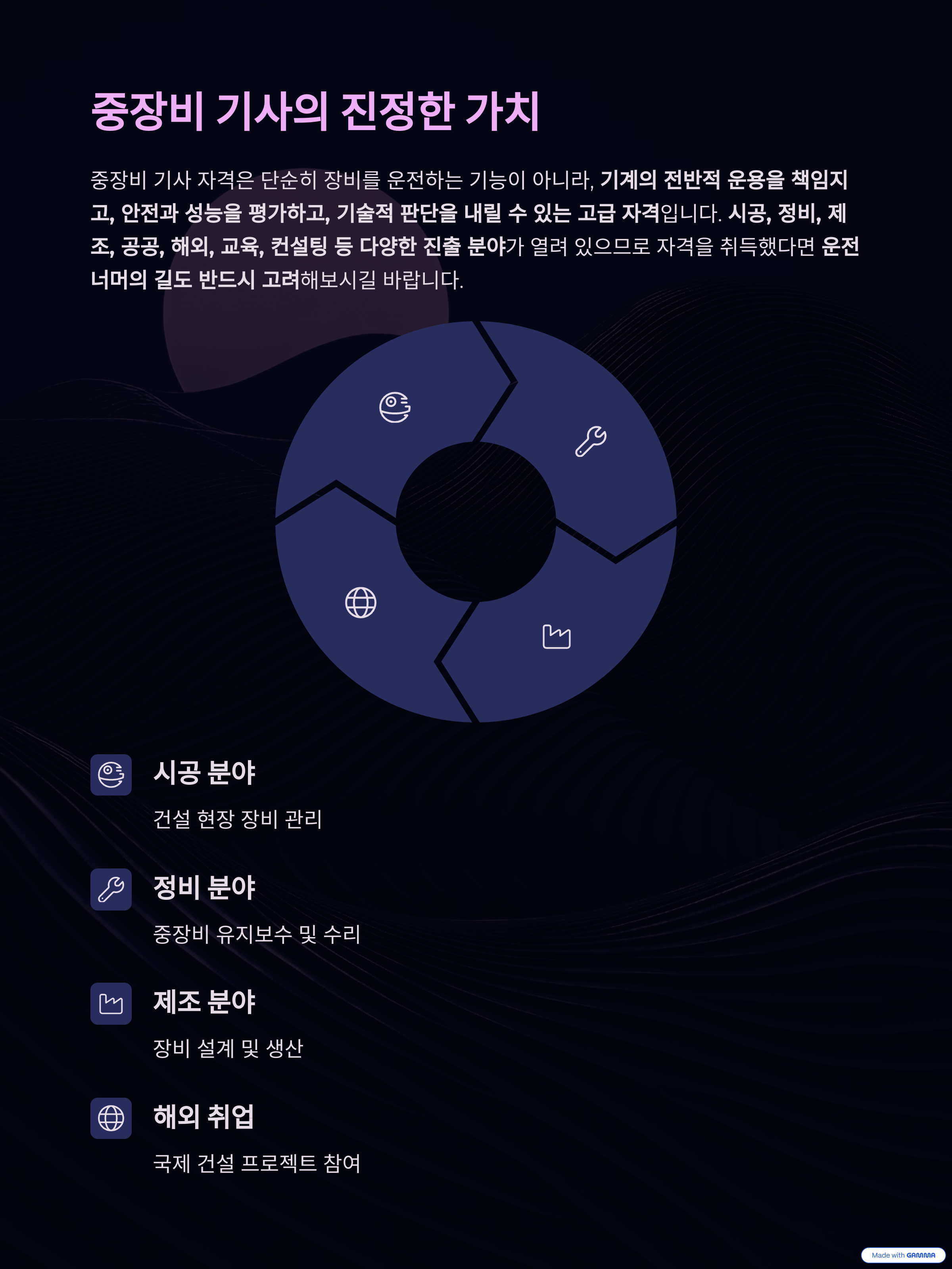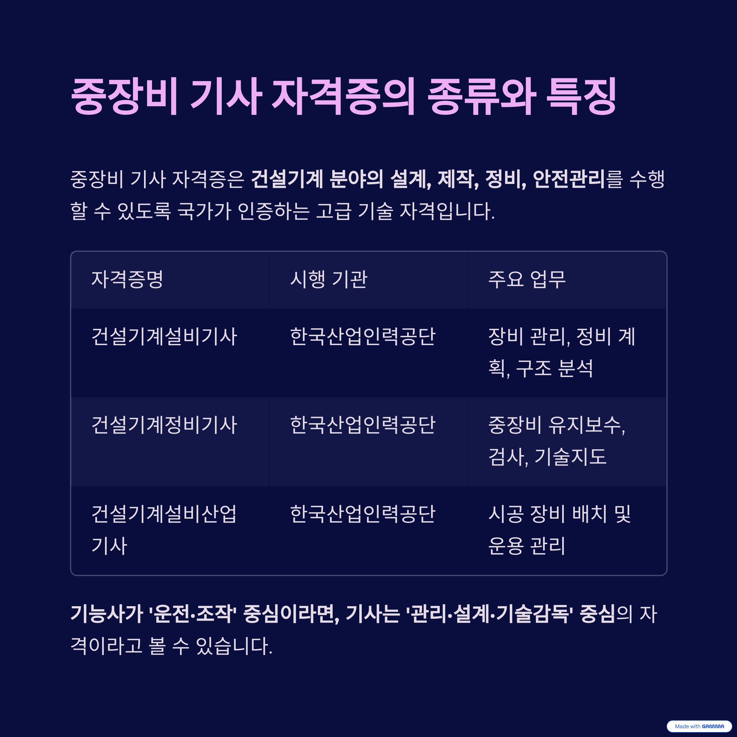 중장비 기사 자격은 단순히 장비를 운전하는 기능이 아니라,
