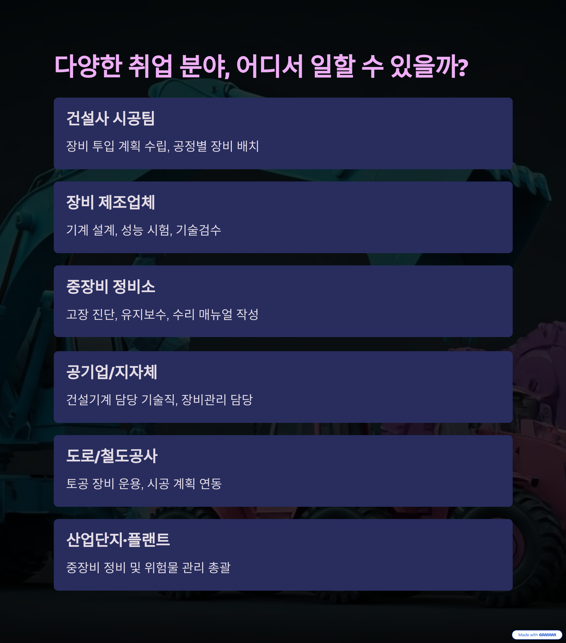 중장비 기사 자격으로 취업 가능한 대표 분야는?