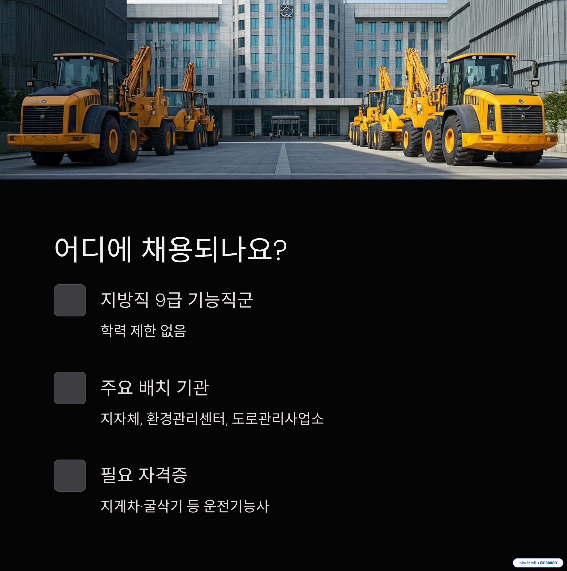 중장비 운전직 공무원은 지방직 9급 기능직군으로 분류되며,