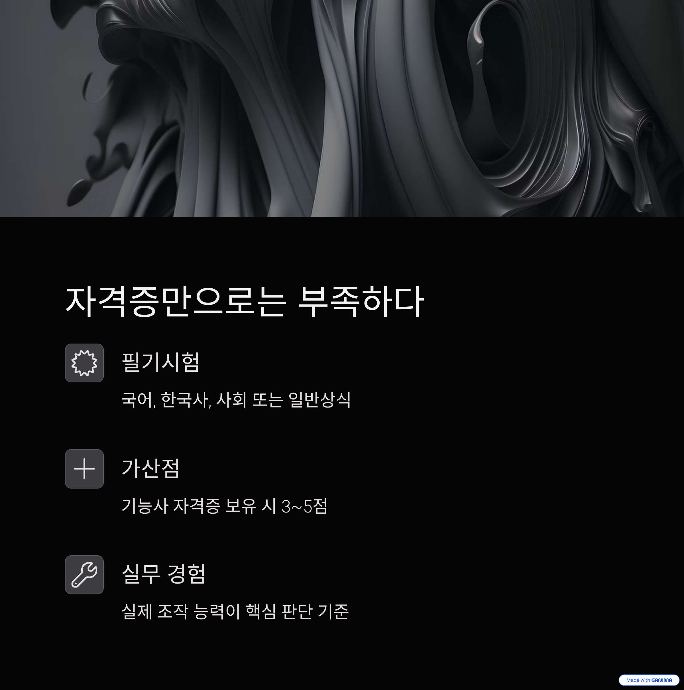 기능사 자격증 보유 시 가산점(3~5점)이 매우 중요하게 작용합니다.