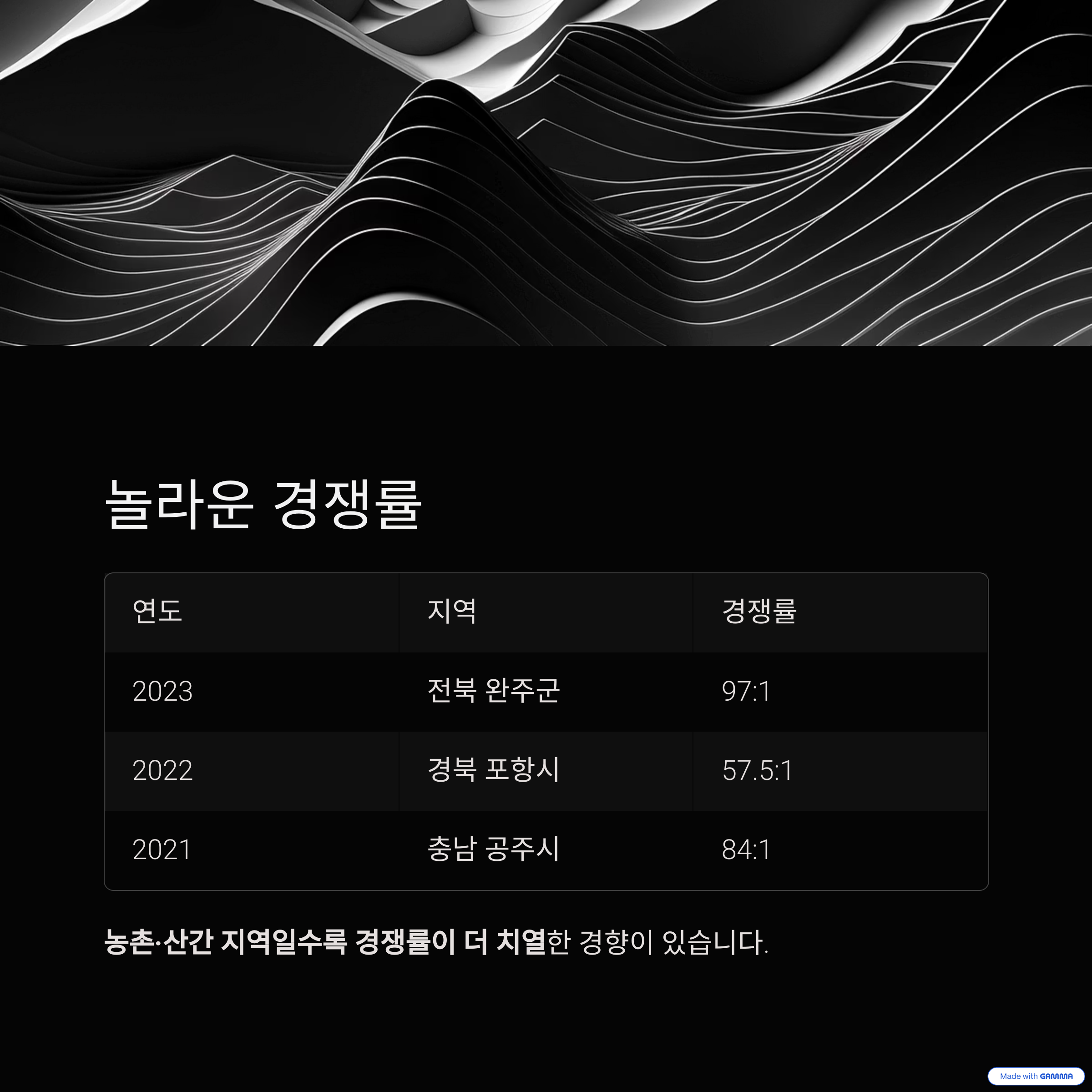 특히 농촌·산간 지역일수록 경쟁률이 더 치열한 경향이 있습니다.