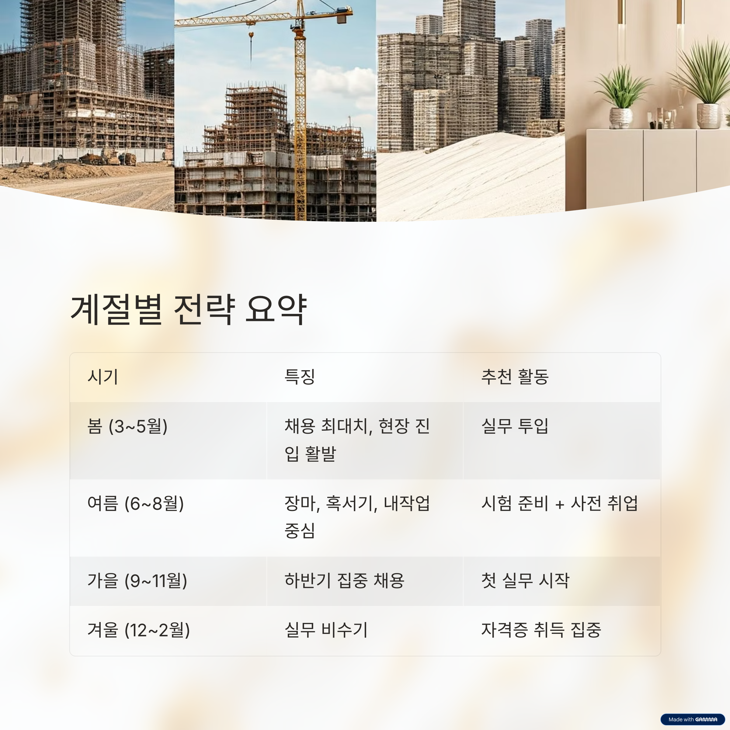핵심: 겨울에 자격증을 준비하고, 봄에 실무 투입되는 전략이 가장 효율적입니다.