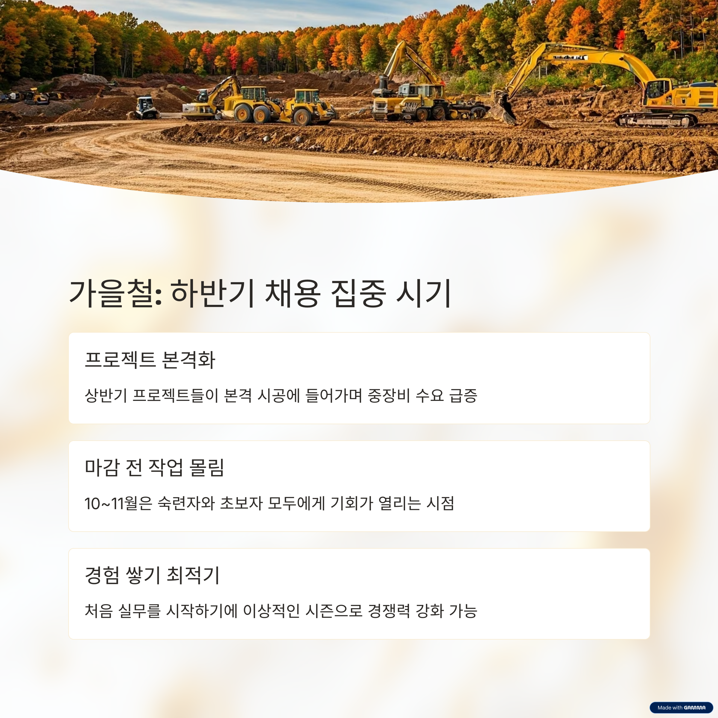 특히 공사 마감 전 작업이 몰리는 10~11월은 숙련자와 초보자 모두에게 기회가 열리는 시점입니다.