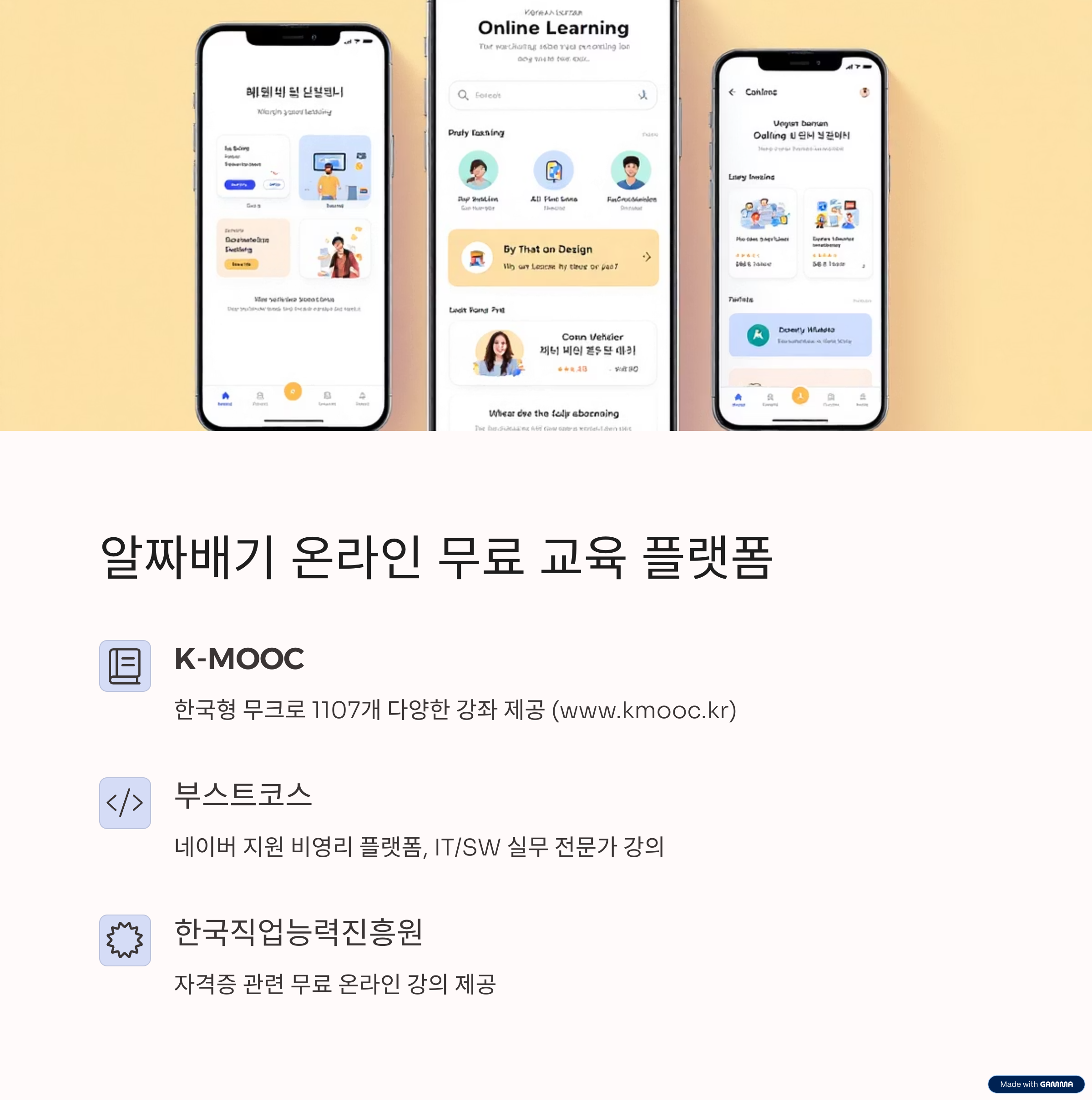 다양한 교육 플랫폼에서 제공하는 자원들을 통해 기술과 자격을 습득할 수 있도록 안내하겠습니다.