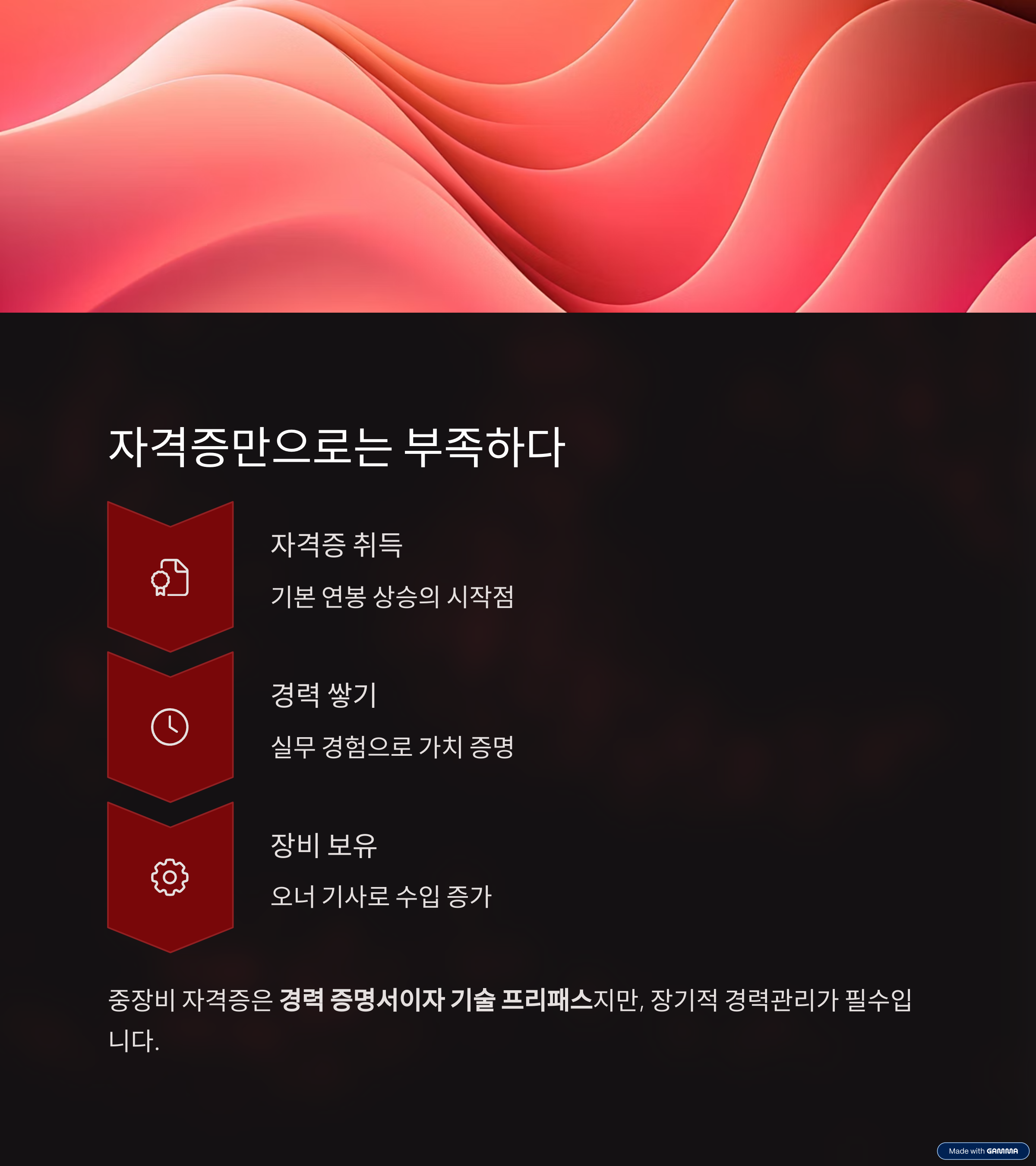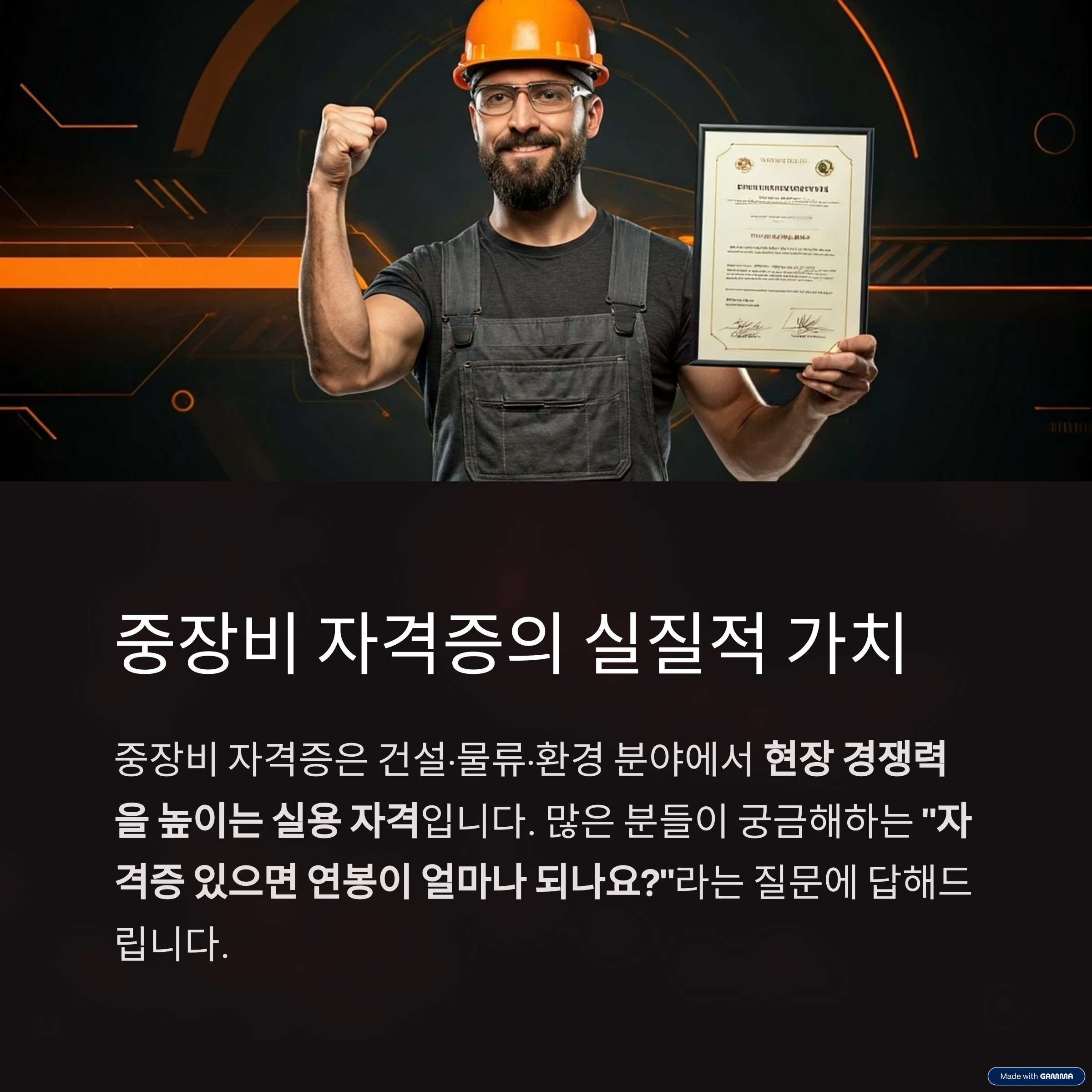 중장비 자격증은 **하나만 있어도 기본 연봉이 올라가는 ‘경력 증명서’이자 ‘기술 프리패스’**입니다.