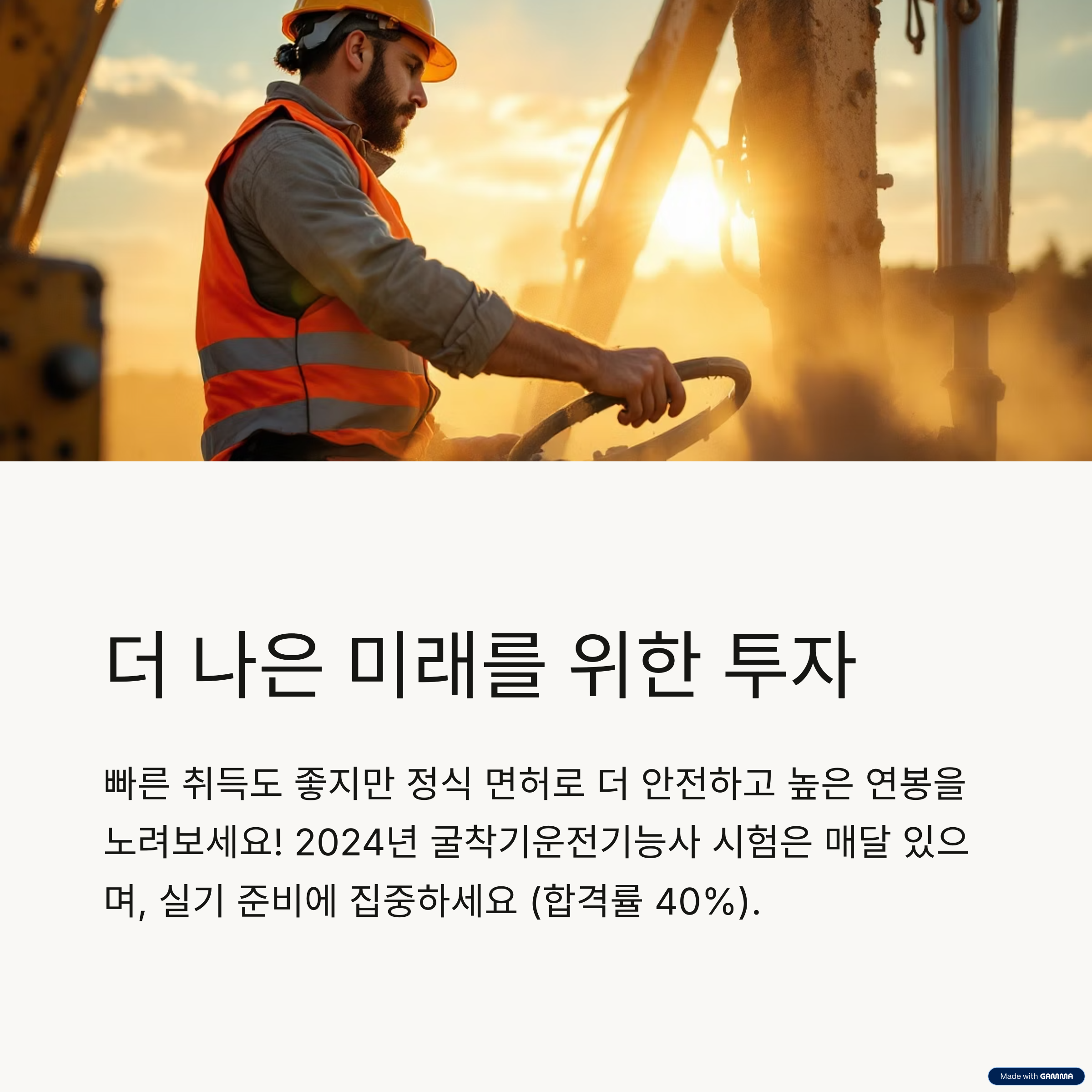 본 콘텐츠가 중장비 라이선스 취득을 계획 중인 모든 분들에게 유용한 지침이 되길 바랍니다.