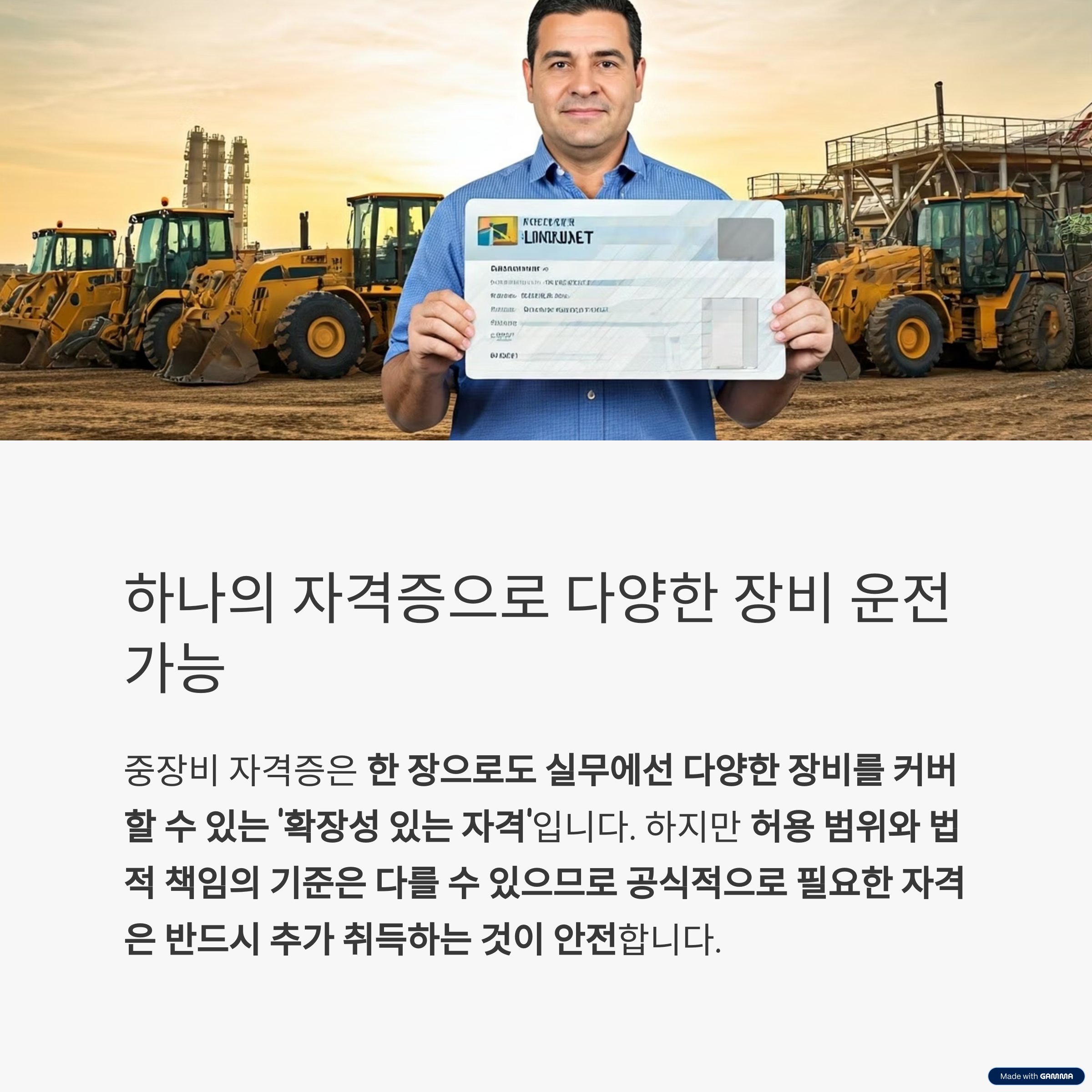실제 현장에서는 하나의 자격증으로 유사 장비까지 운전 가능한 경우가 많습니다.