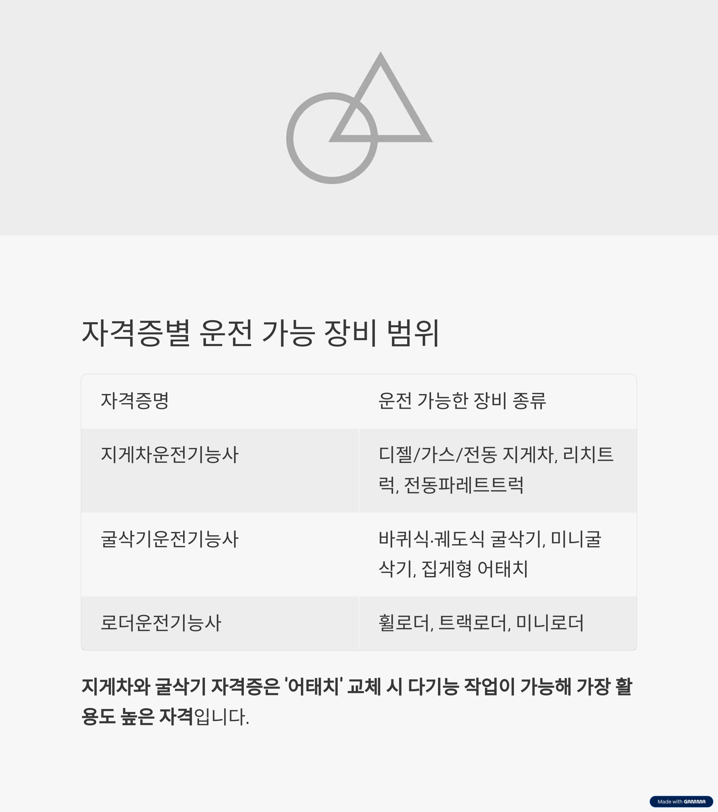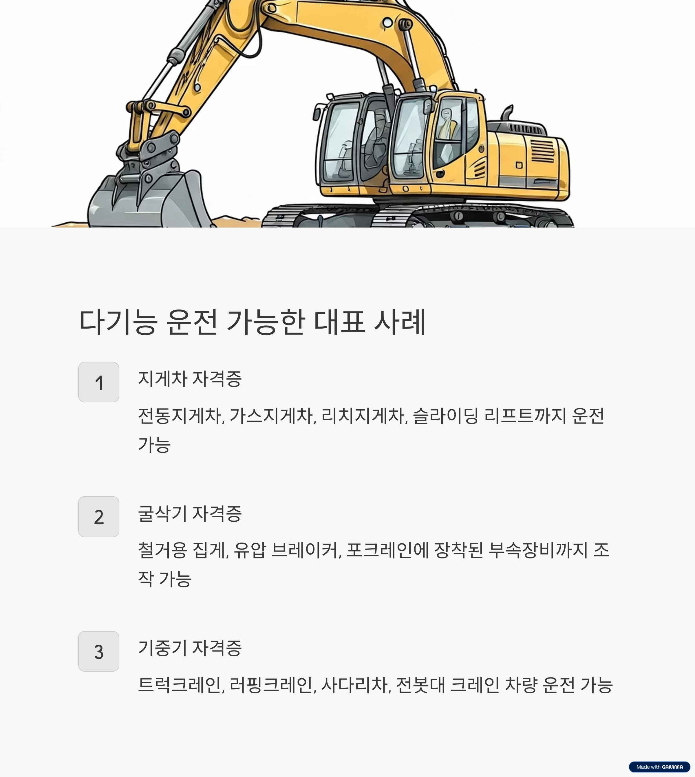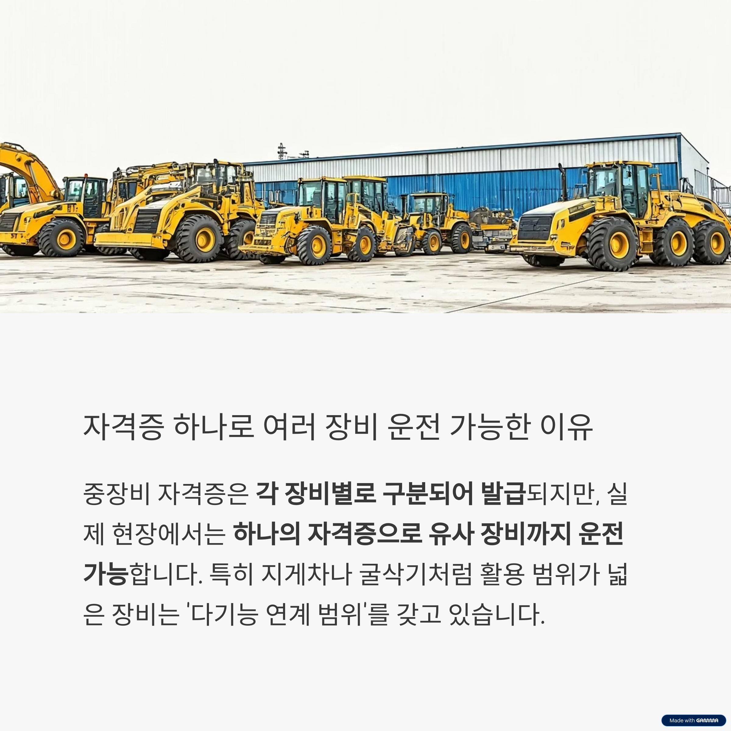 하나의 자격으로 여러 장비 운전이 가능한 ‘다기능 연계 범위’**를 갖고 있기도 합니다.