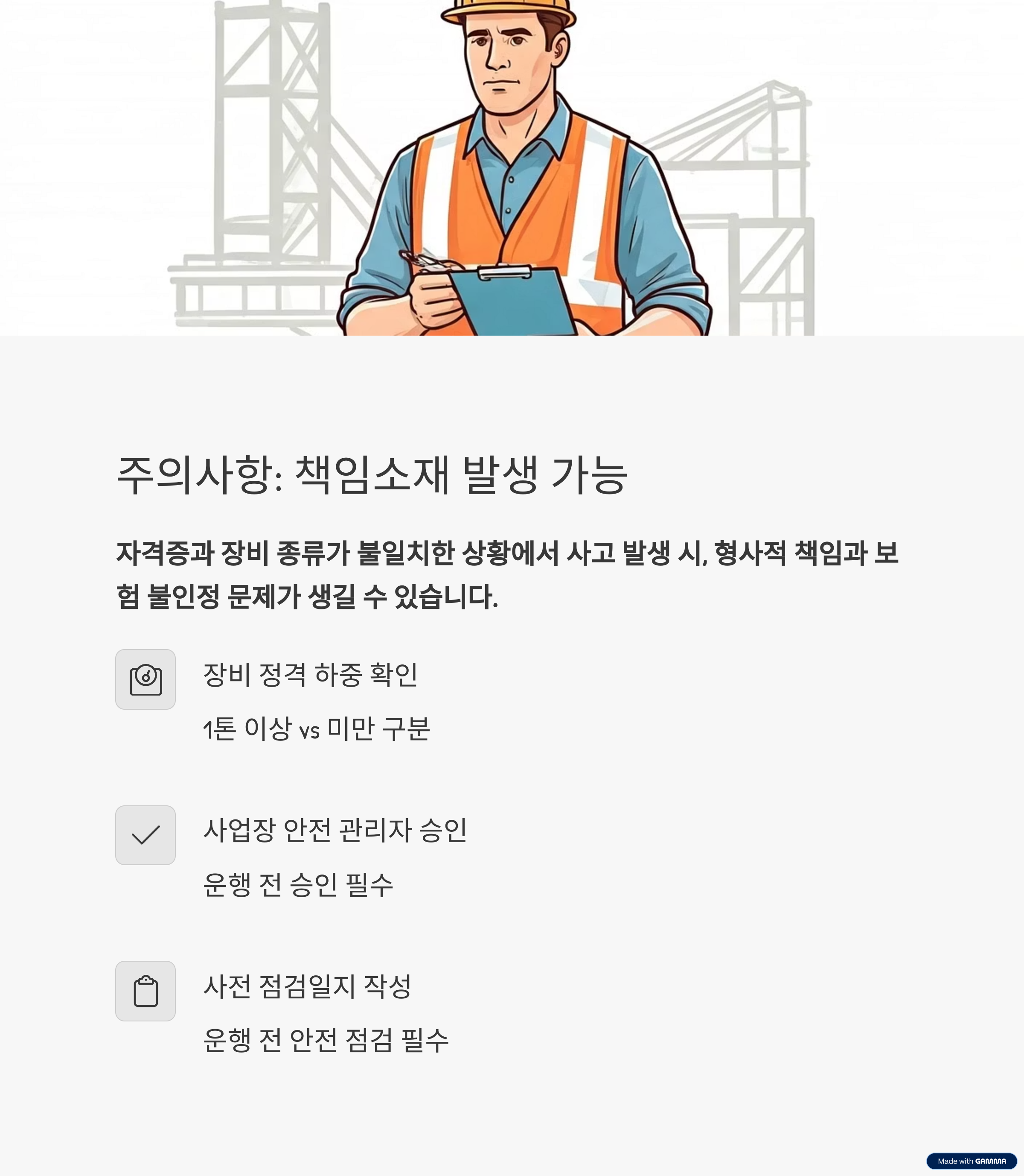주의할 점: 자격 외 장비 운전은 ‘책임소재’가 발생할 수 있다