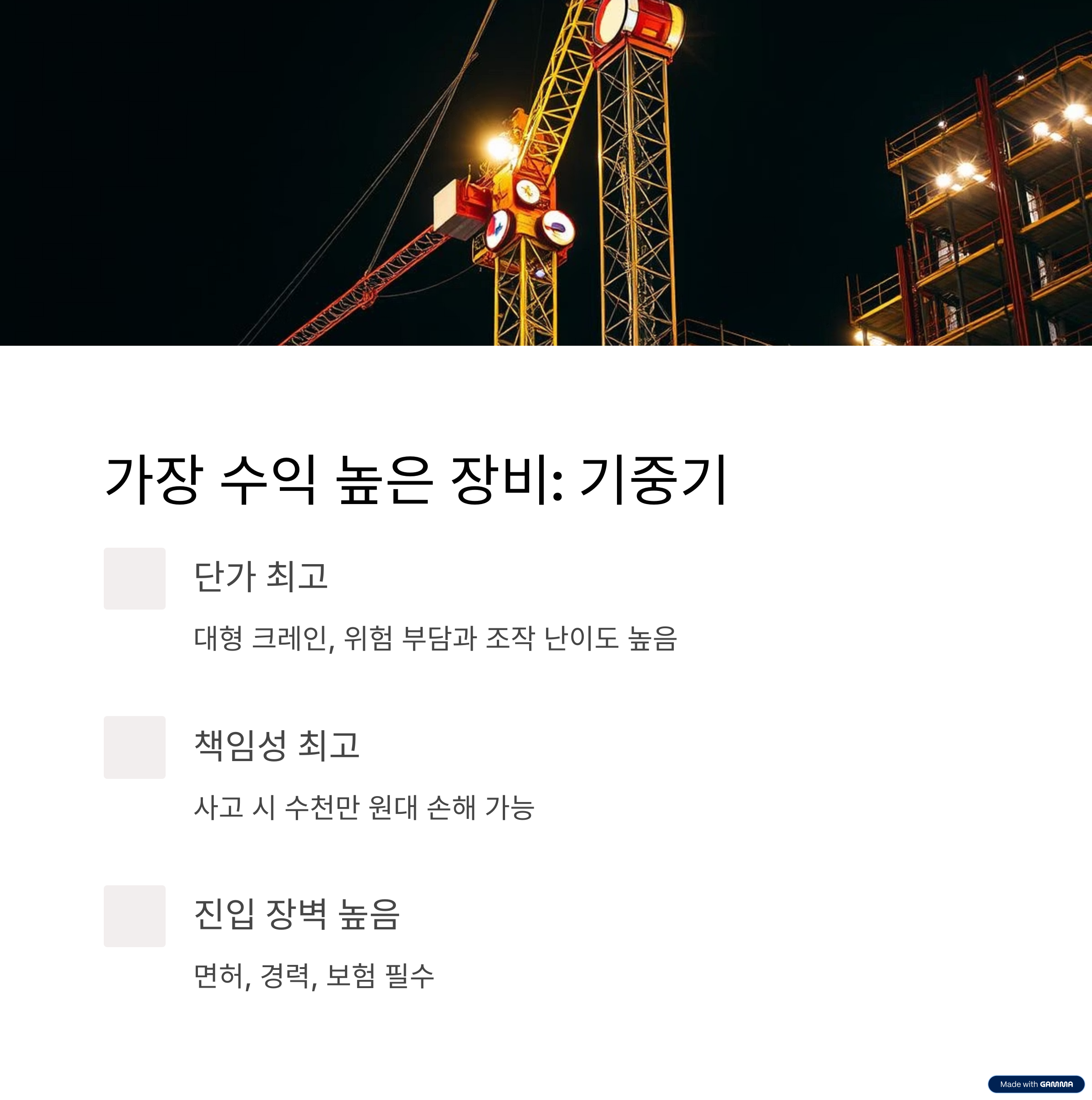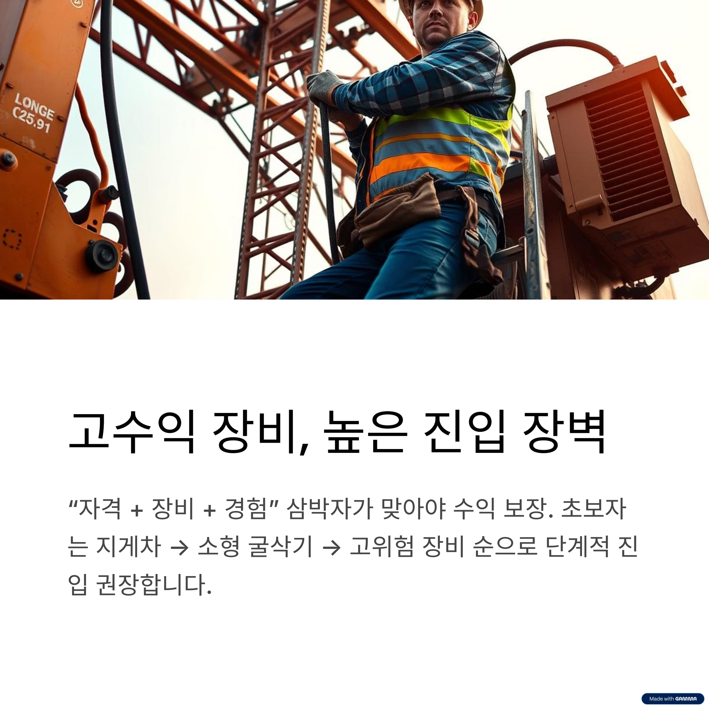 중장비는 “자격 + 장비 + 경험”의 삼박자가 맞아야 제대로 된 수익이 보장됩니다.