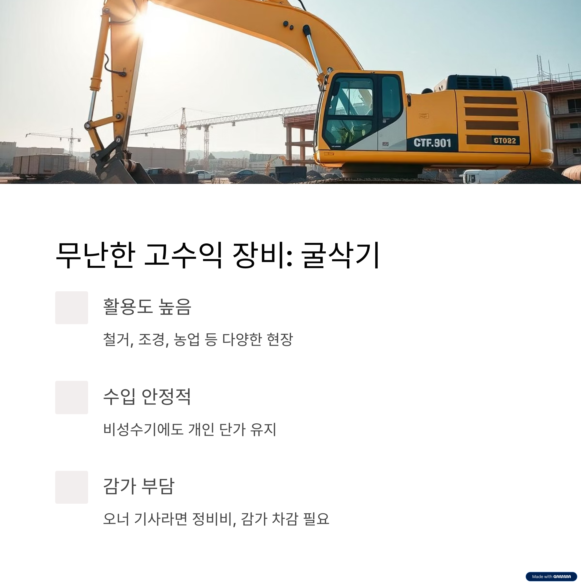 중장비 장비별 일당 비교, 가장 높은 수익 장비는?