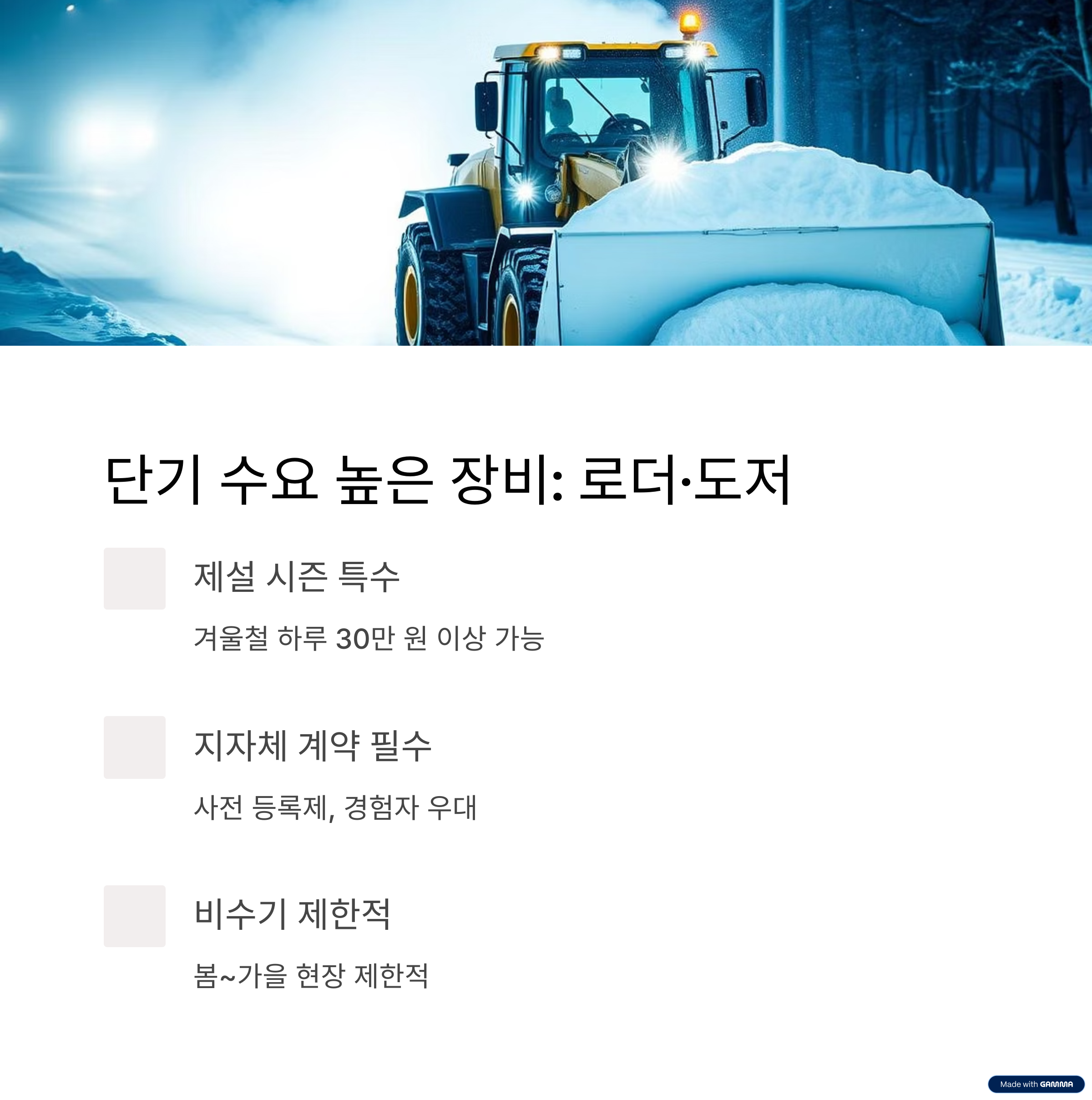 • 제설 시즌 특수 수요: 겨울철 하루 30만 원 이상도 가능
