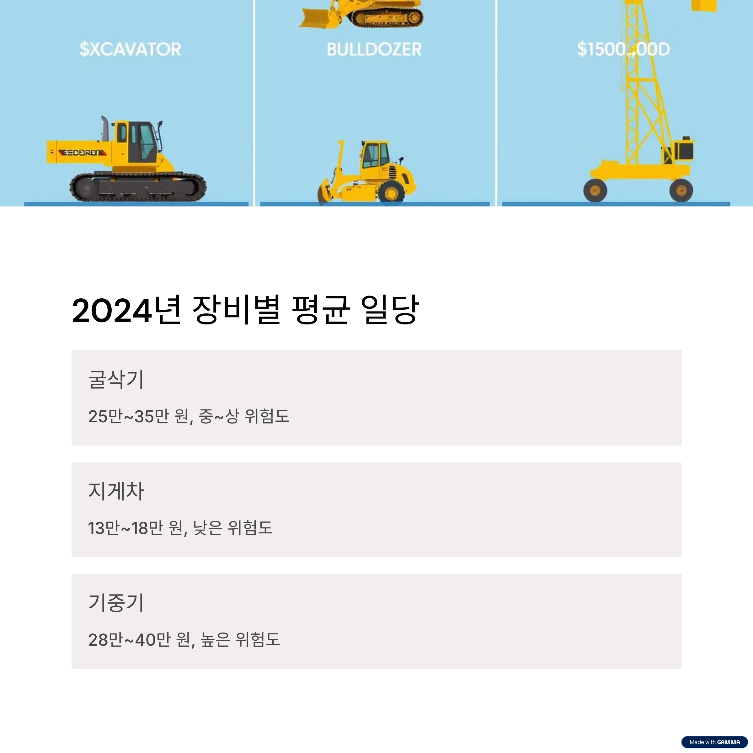 실제로 중장비는 장비 종류, 작업 위험도, 유지비에 따라 일당 격차가 크게 발생하며,