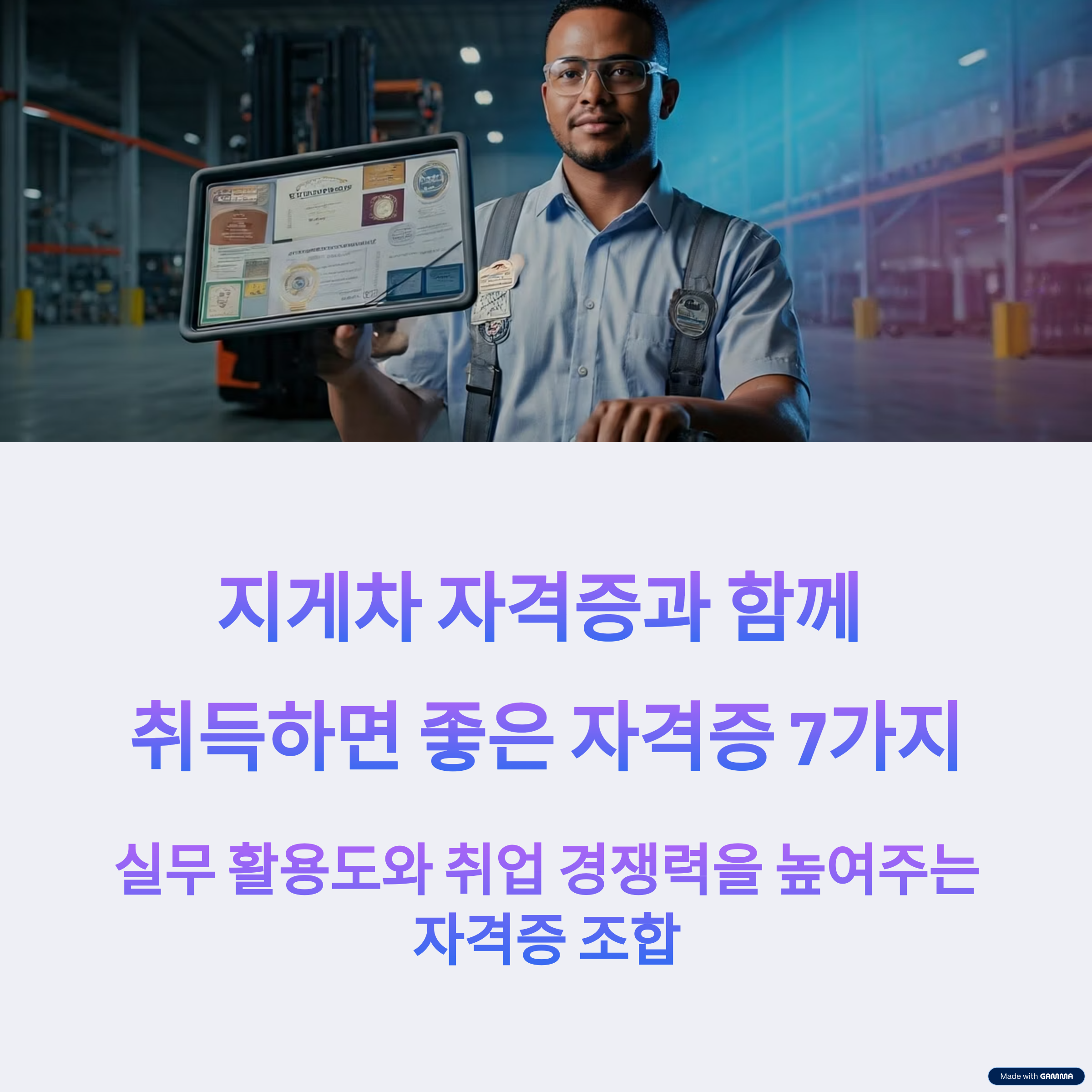 | 지게차 + 산업안전 | 장기 유리 | 관리자/안전감독 |