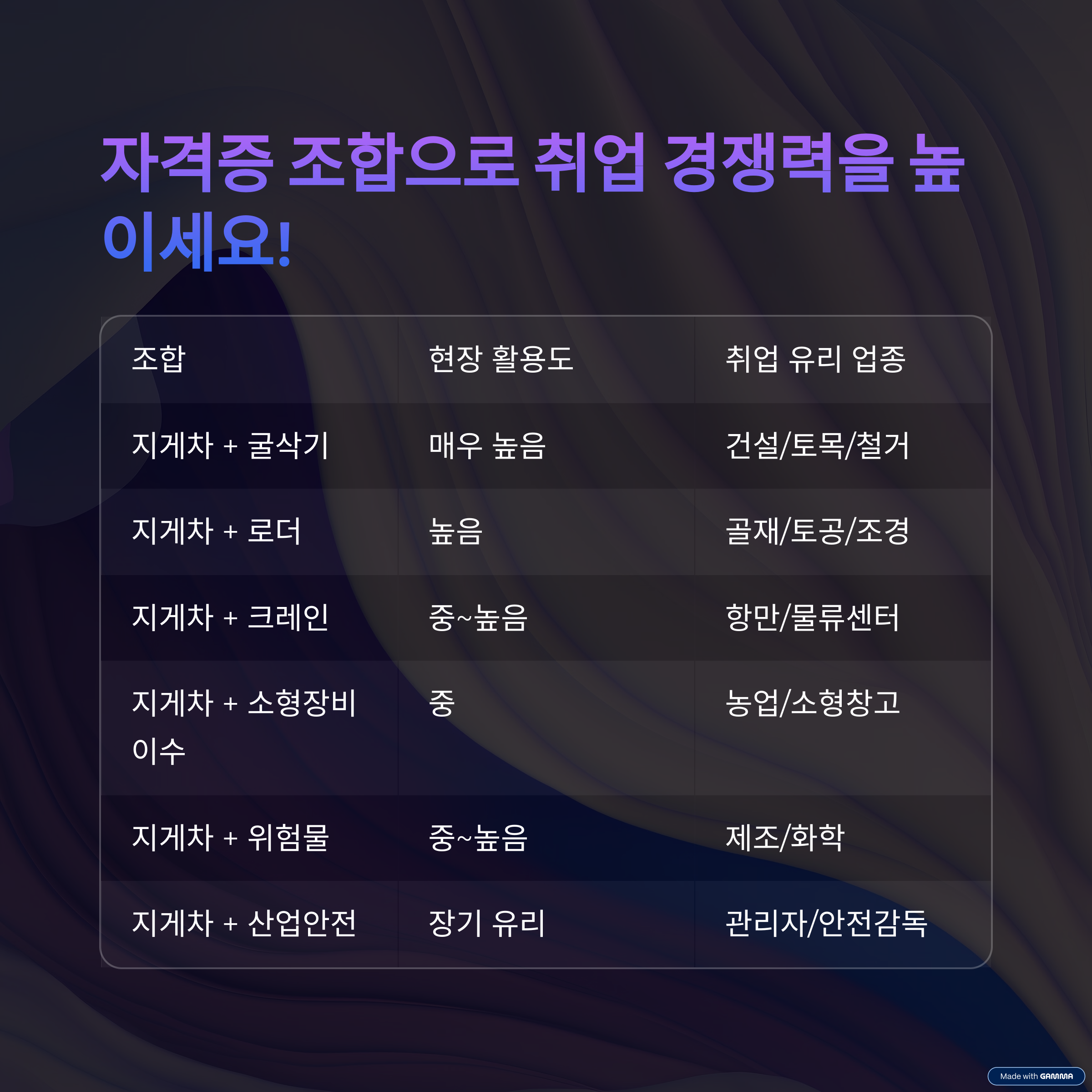 하지만 다른 장비 자격증, 실무 면허, 안전 자격증과의 조합에 따라