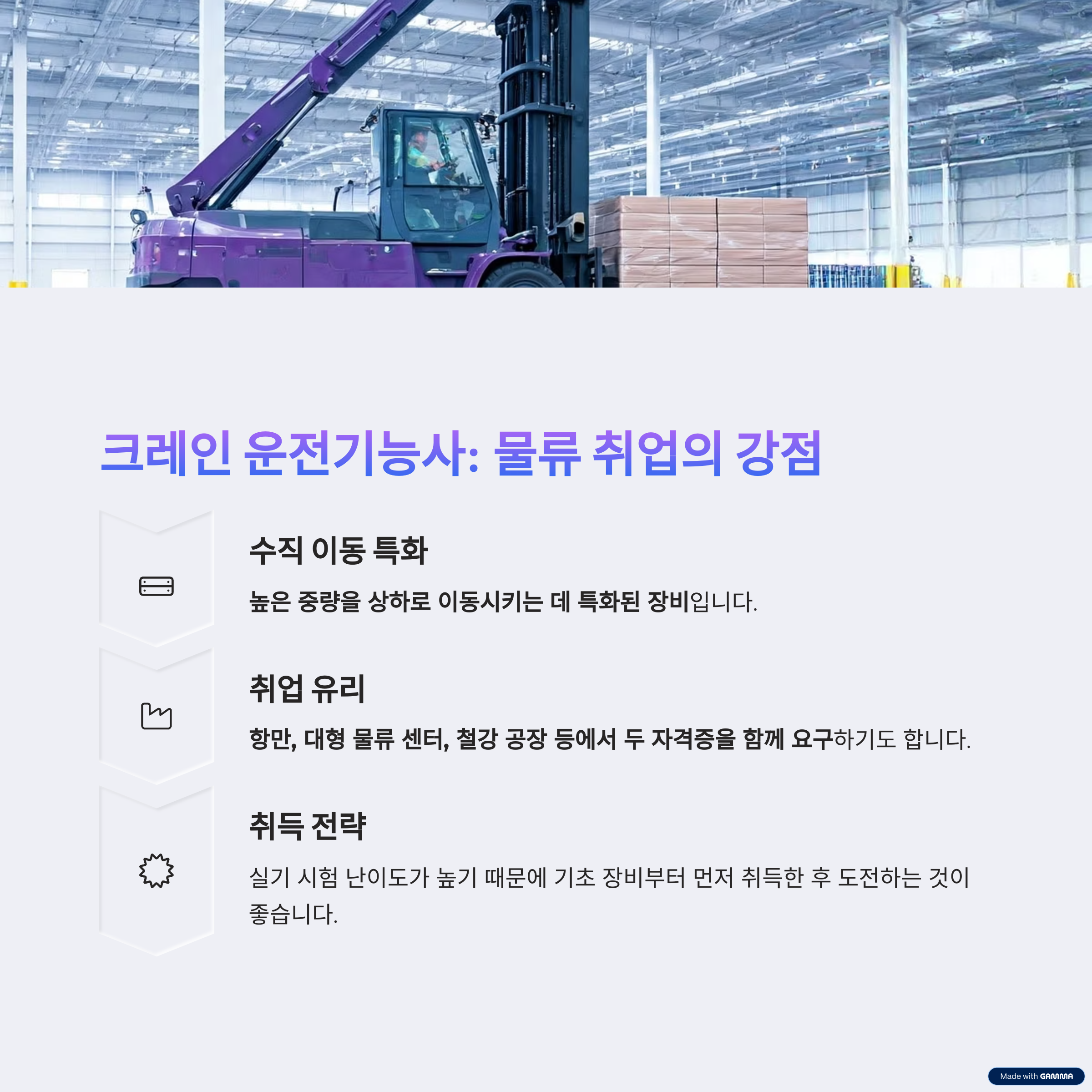 5. 크레인 운전기능사: 물류 창고 및 항만 취업에 유리