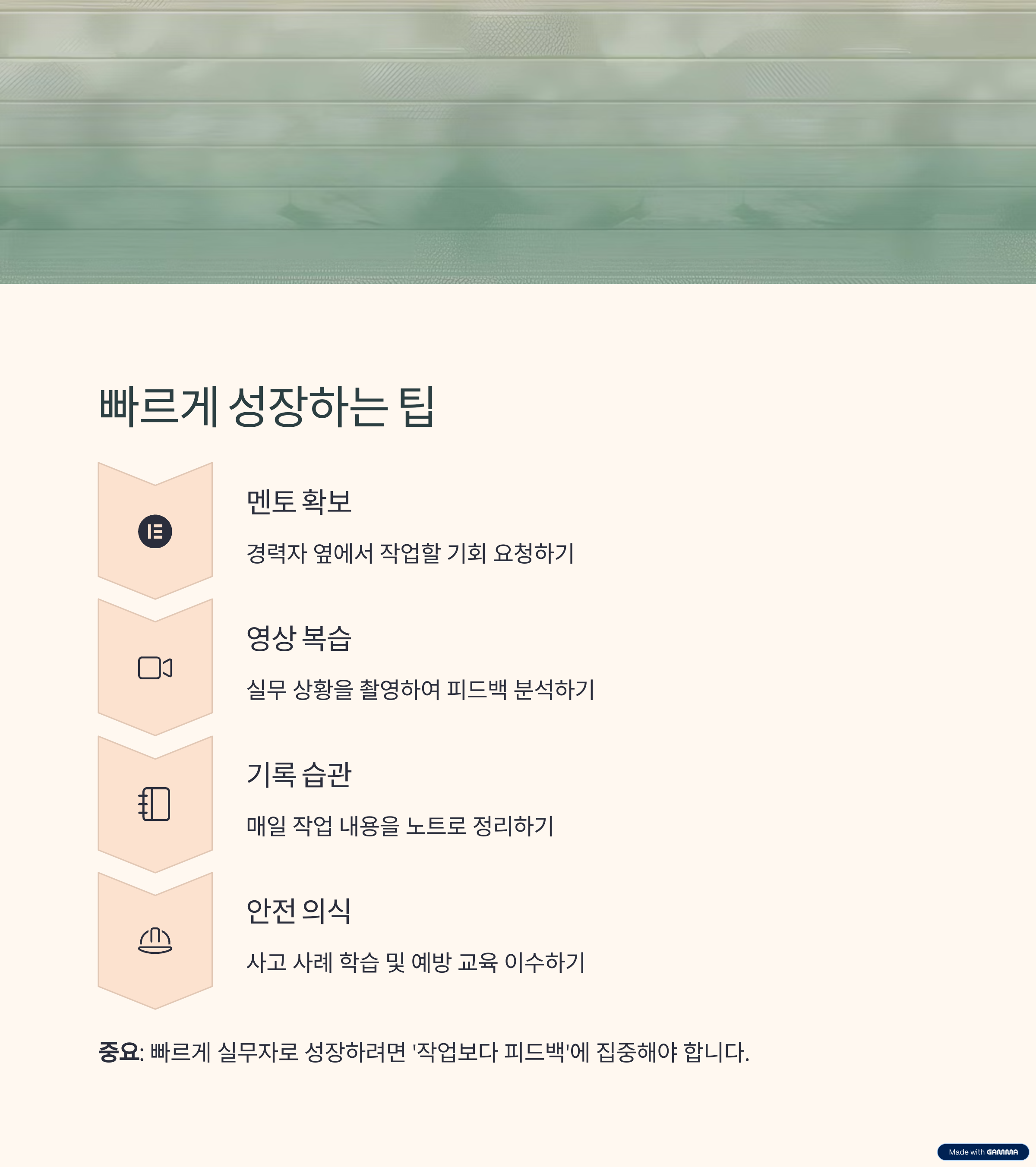 실무 진입 속도를 높이려면 다음 요소가 중요합니다.