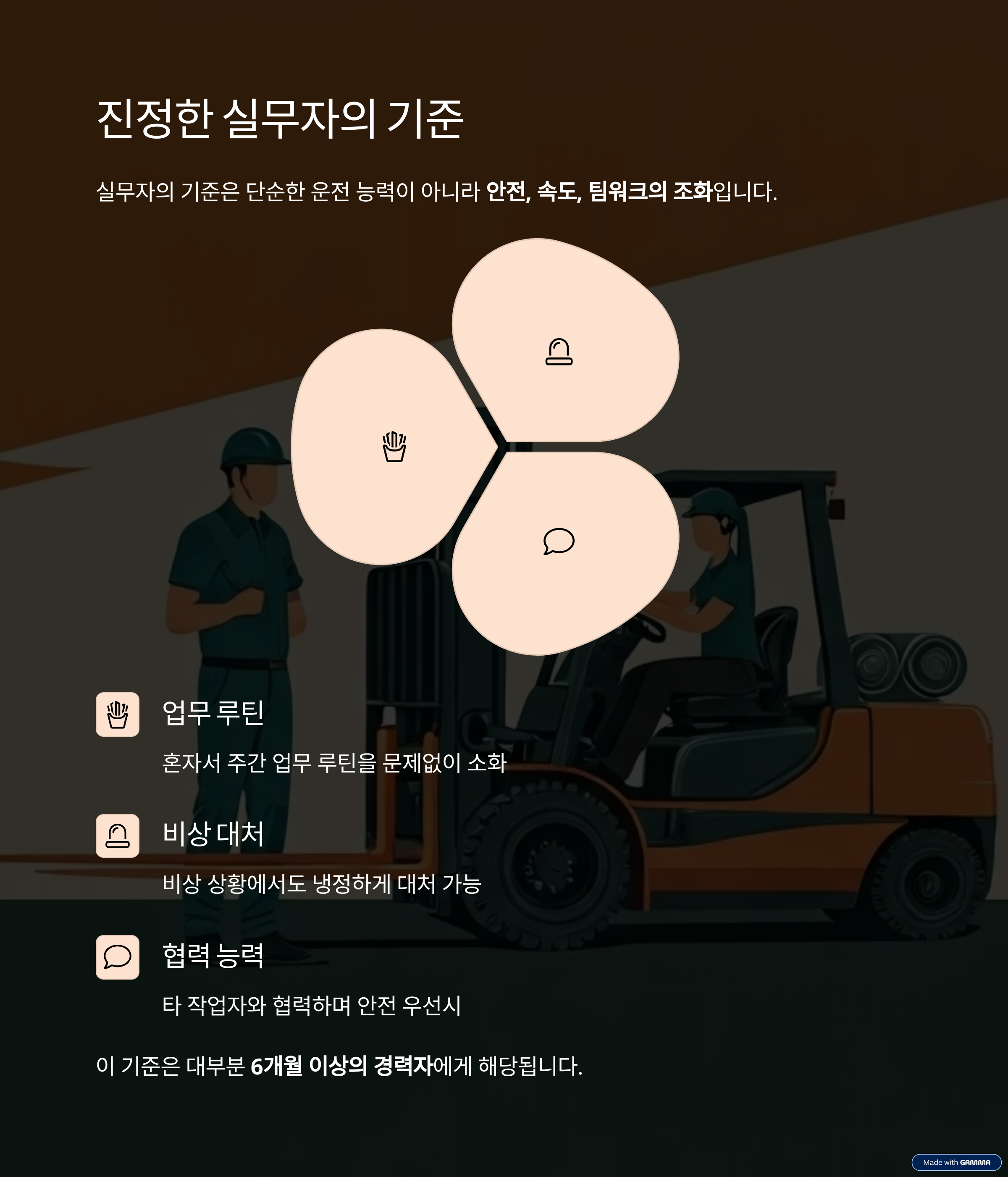 지게차 초보에서 실무자로 성장하기까지는 평균 3개월~6개월이 필요하며,