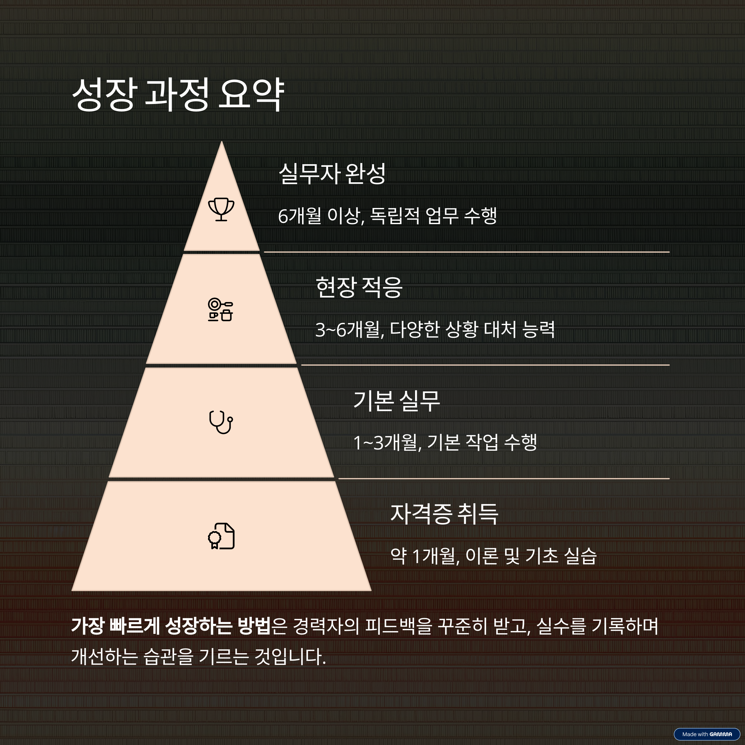 가장 빠르게 성장하는 방법은 경력자의 피드백을 꾸준히 받고, 실수를 기록하며 개선하는 습관을 기르는 것입니다.