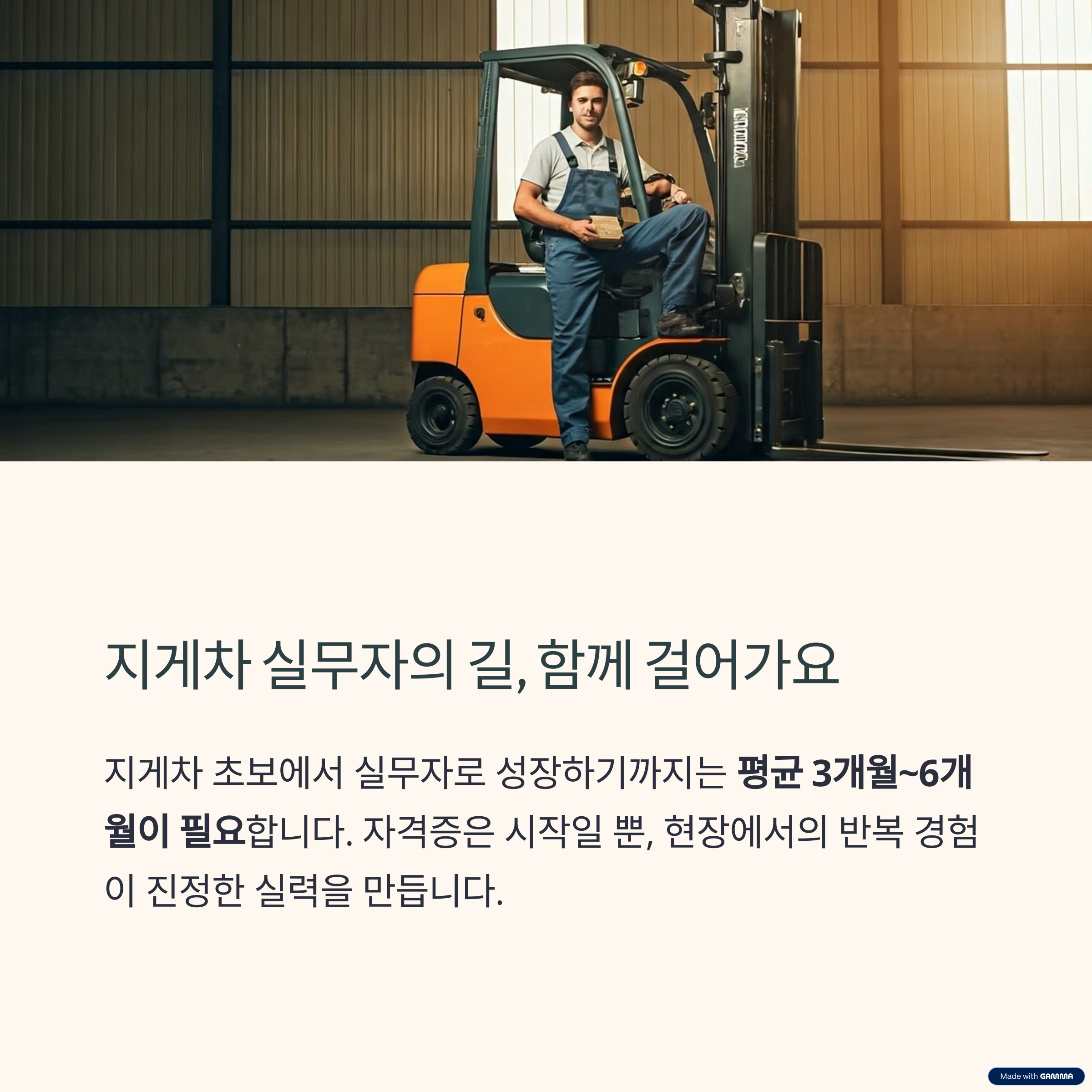 지게차 초보에서 실무자로 성장하기까지는 평균 3개월~6개월이 필요하며,