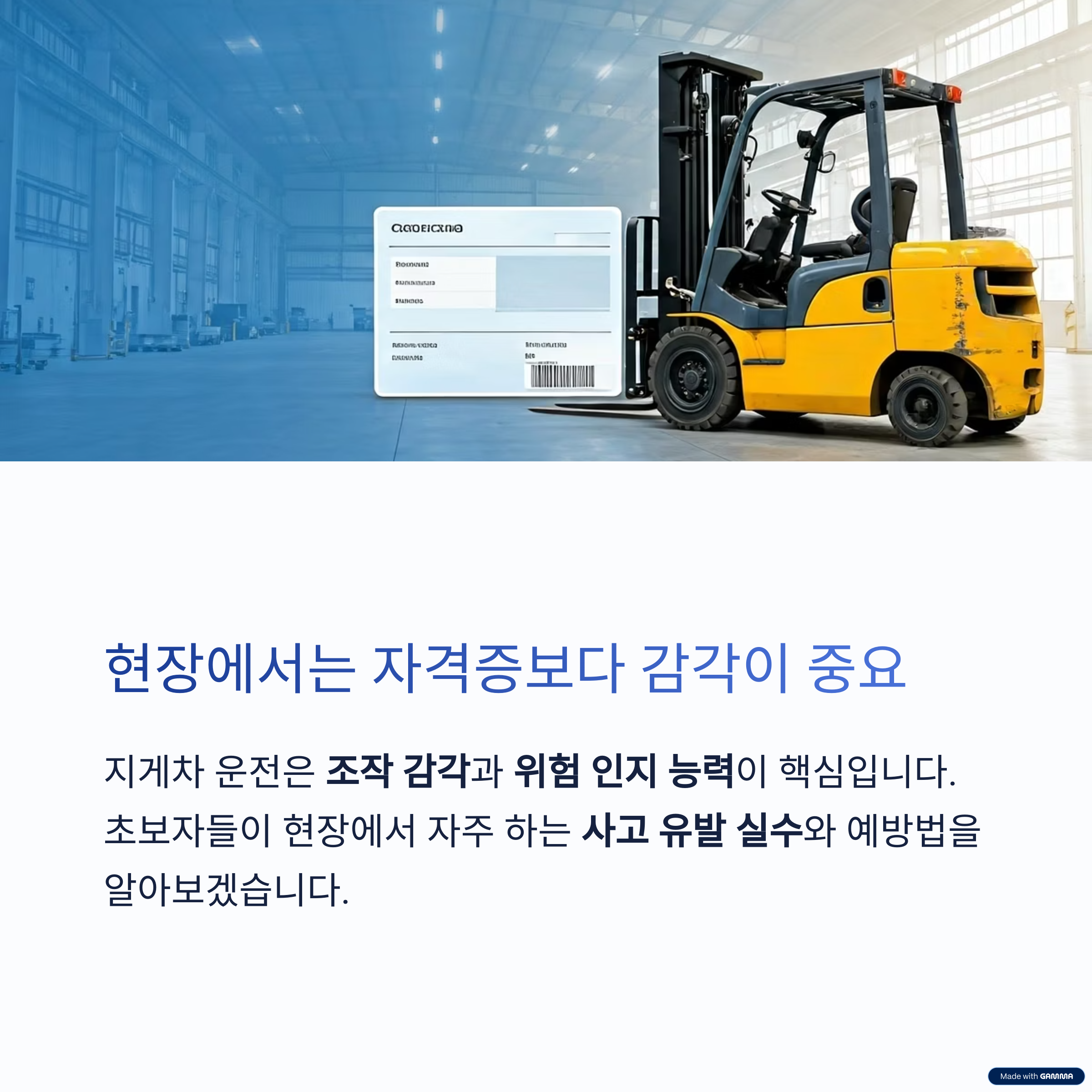지게차는 단순 운전 같지만, 매 순간 사고와 마주할 수 있는 장비입니다.