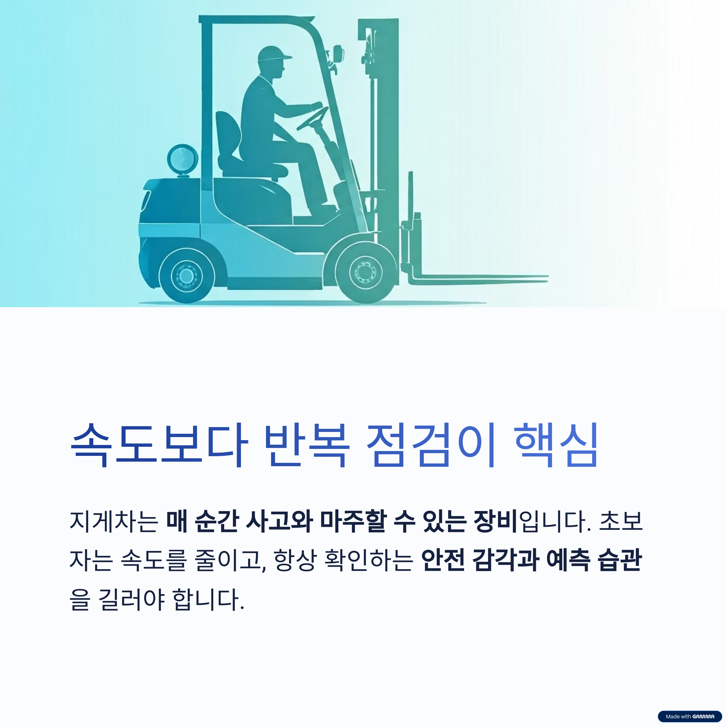 결론: 지게차 초보자, ‘속도보다 반복 점검’이 핵심이다