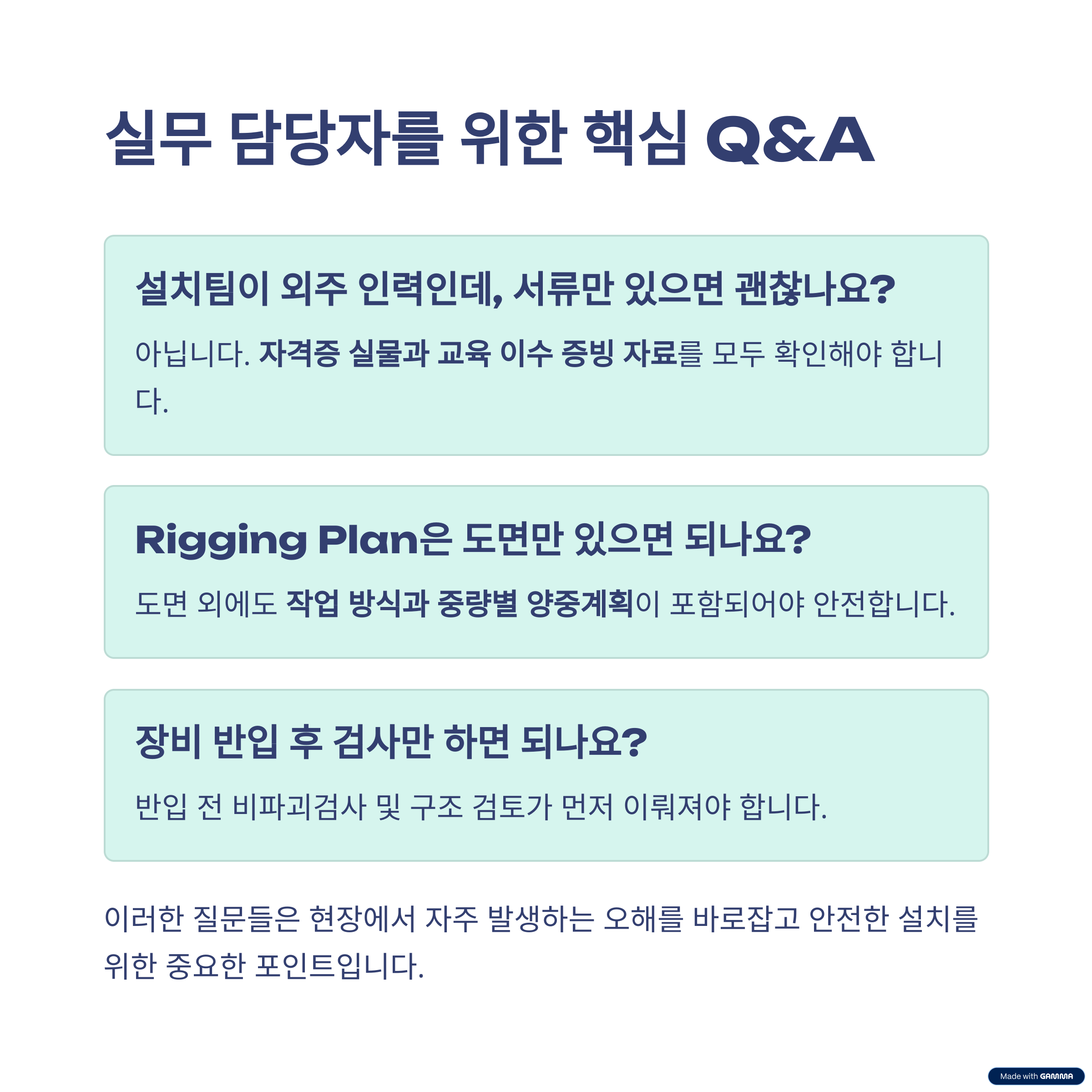 → 도면 외에도 작업 방식과 중량별 양중계획이 포함되어야 안전합니다.