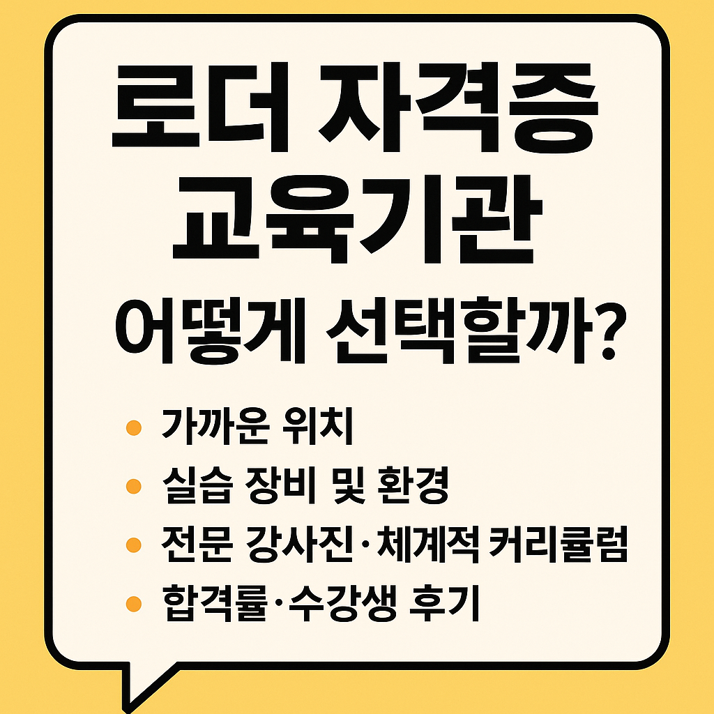로더 자격증 취득을 목표로 한다면, 제대로 된 교육기관을 선택하는 것이 첫걸음입니다.