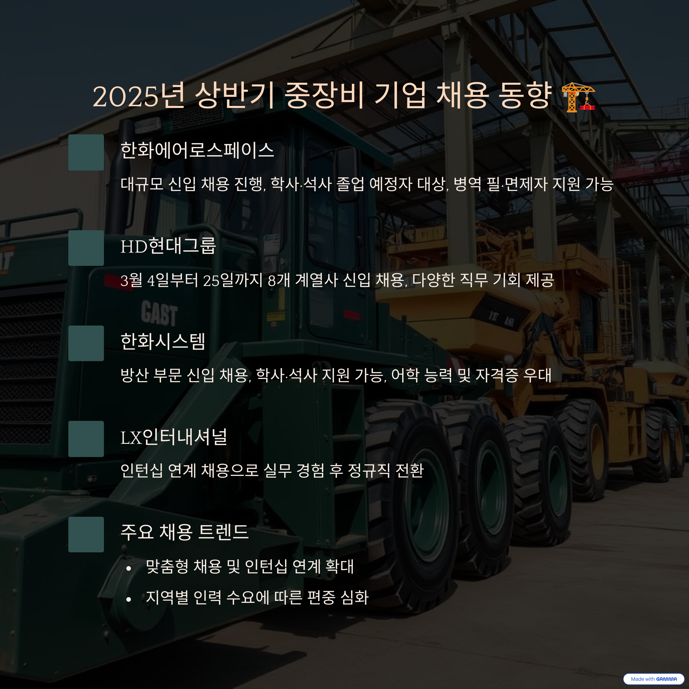 오늘은 2025년 상반기 중장비 채용 시장에 대해 알아보겠습니다.