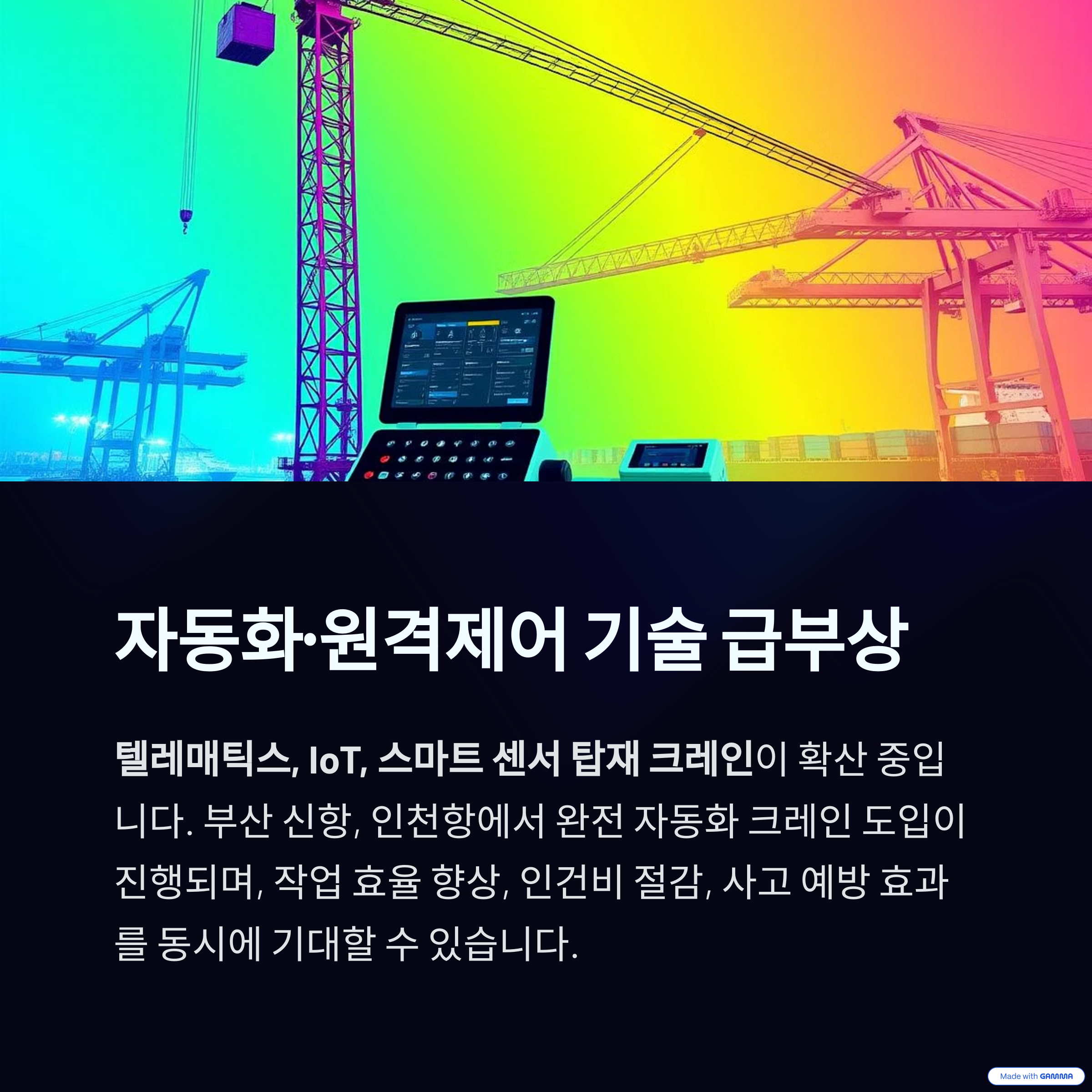 실제 사례로는 부산 신항과 인천항에서 완전 자동화 크레인 도입이 진행 중이며,