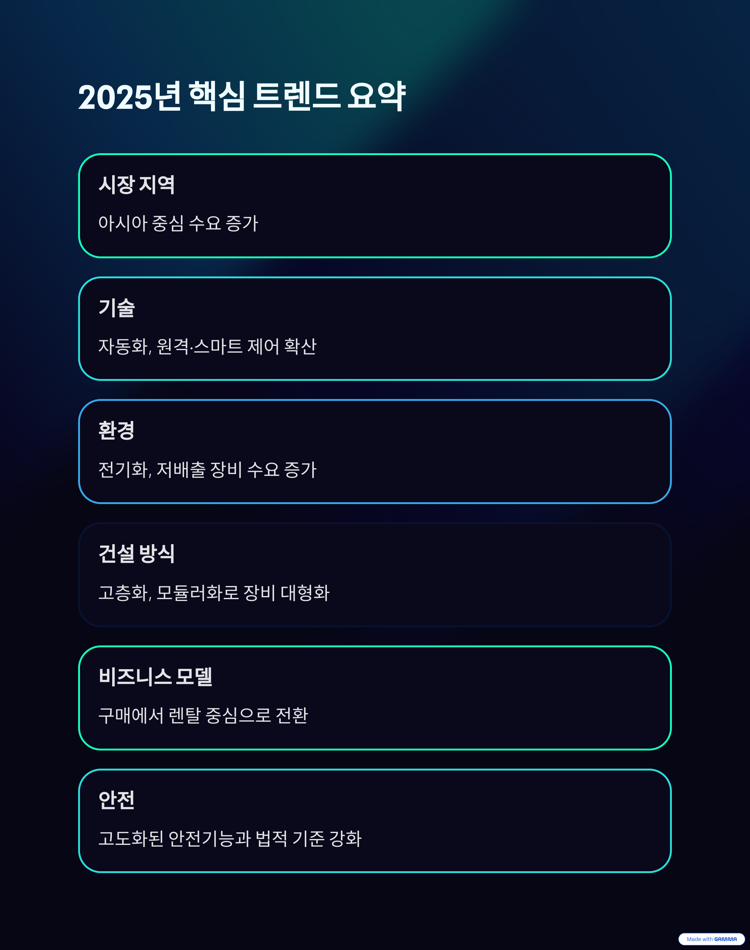 요약: 2025년 타워크레인 산업 핵심 트렌드