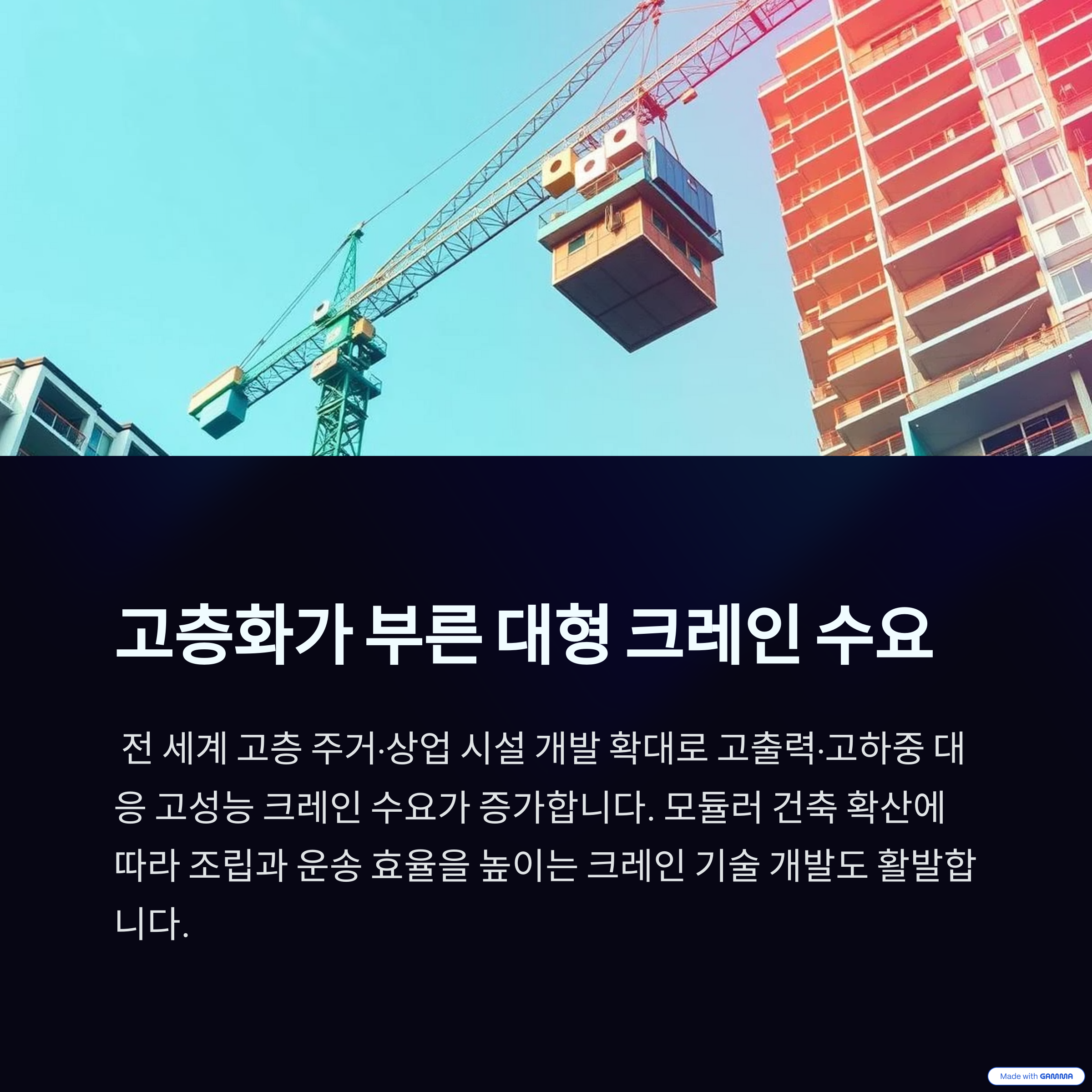 | 초고층 건물 확산 | 고성능 크레인 수요 증가 |